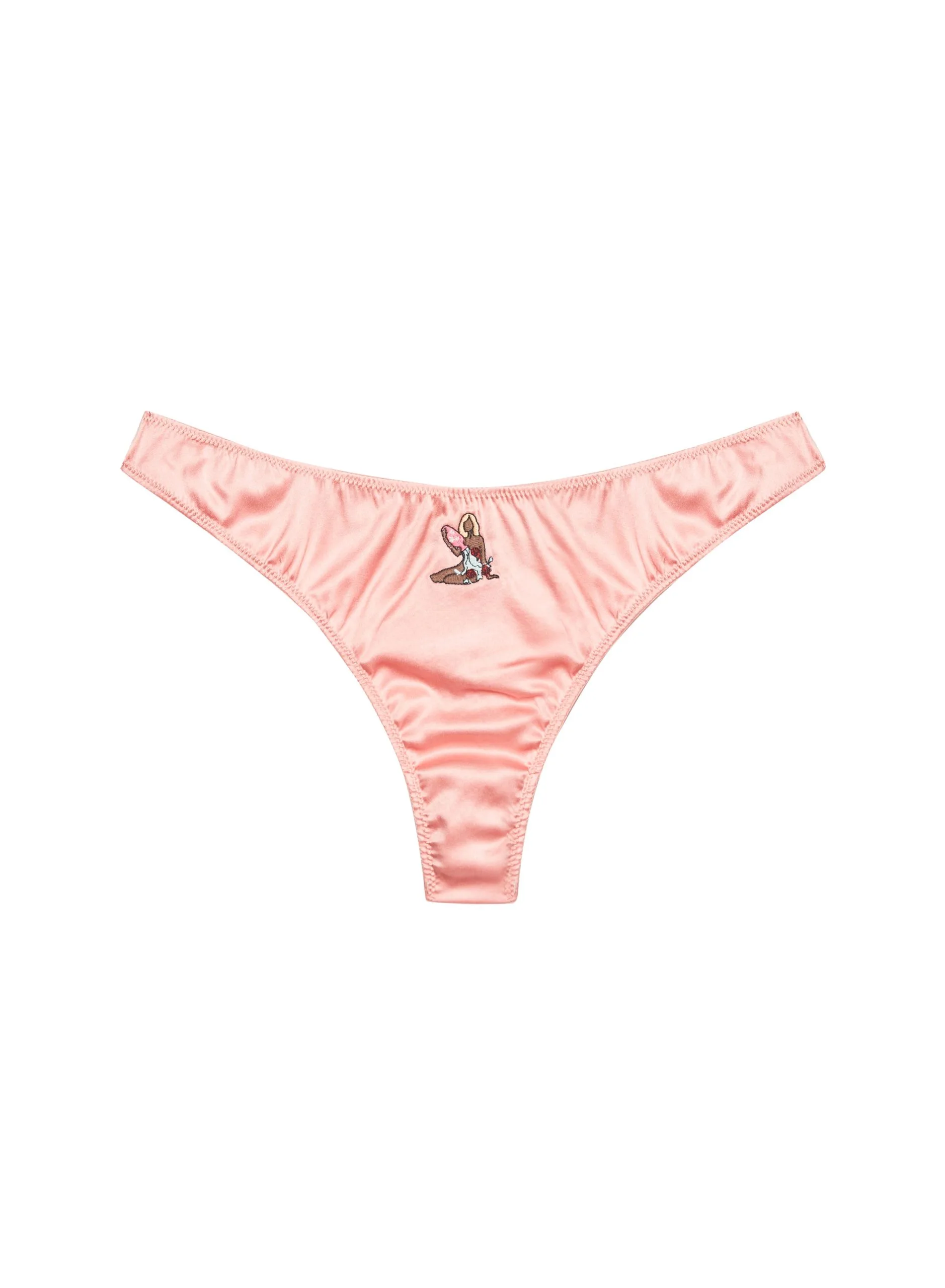 Written in the stars. Our favorite, super comfortable silk thong fits flawlessly under any garment. Features custom zodiac embroidery. Barely there feel with no elastic to dig in. Pair it with the Angel Sleeve Robe.