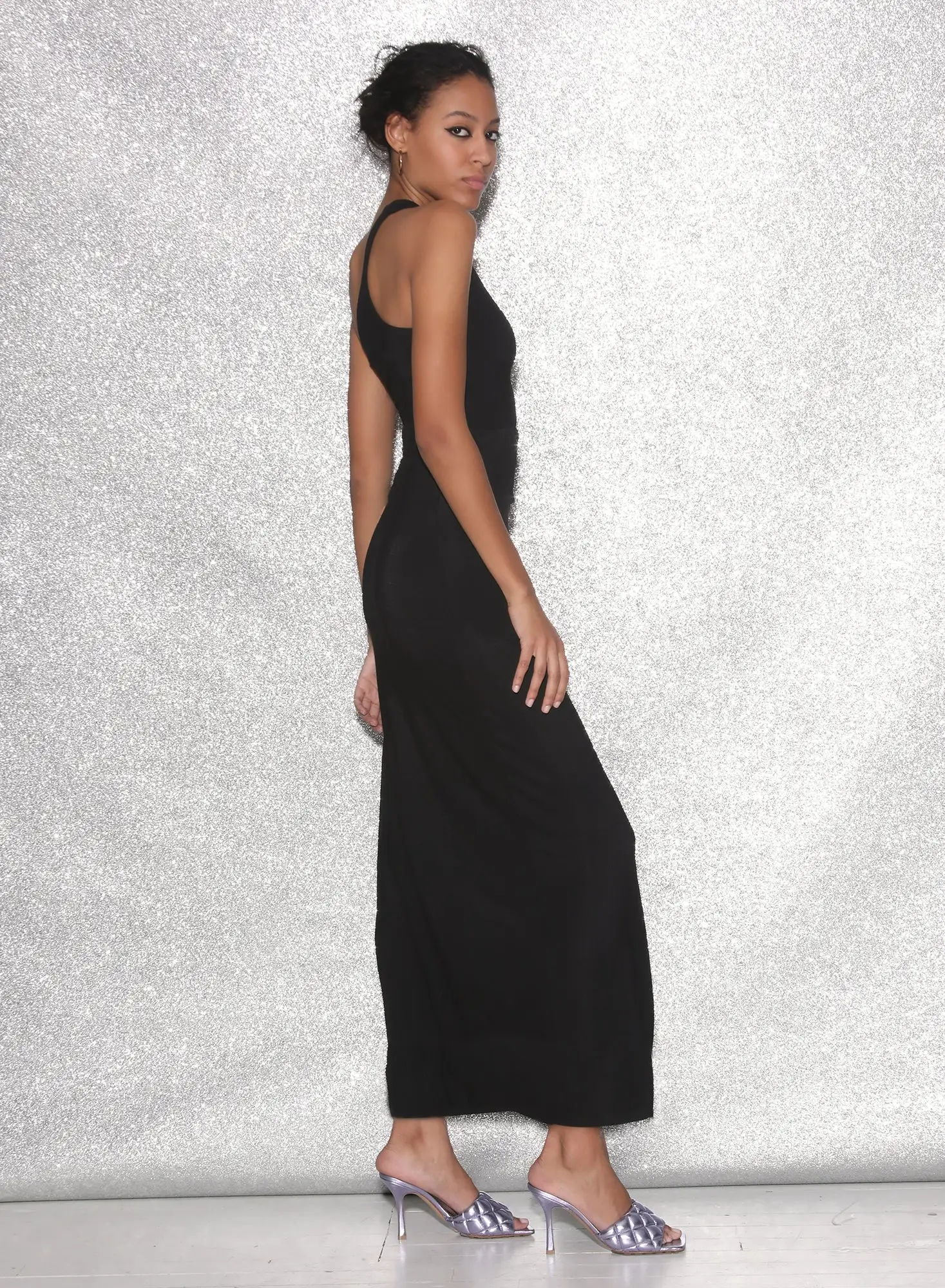 Boogie nights. Our ultra hot Asymmetric Side Knot Dress, featuring side cutout with gold ring detail and high leg opening to really amp up the sex appeal. Cut from luxe soft stretch jersey. Pair with heels and an extra dirty martini.