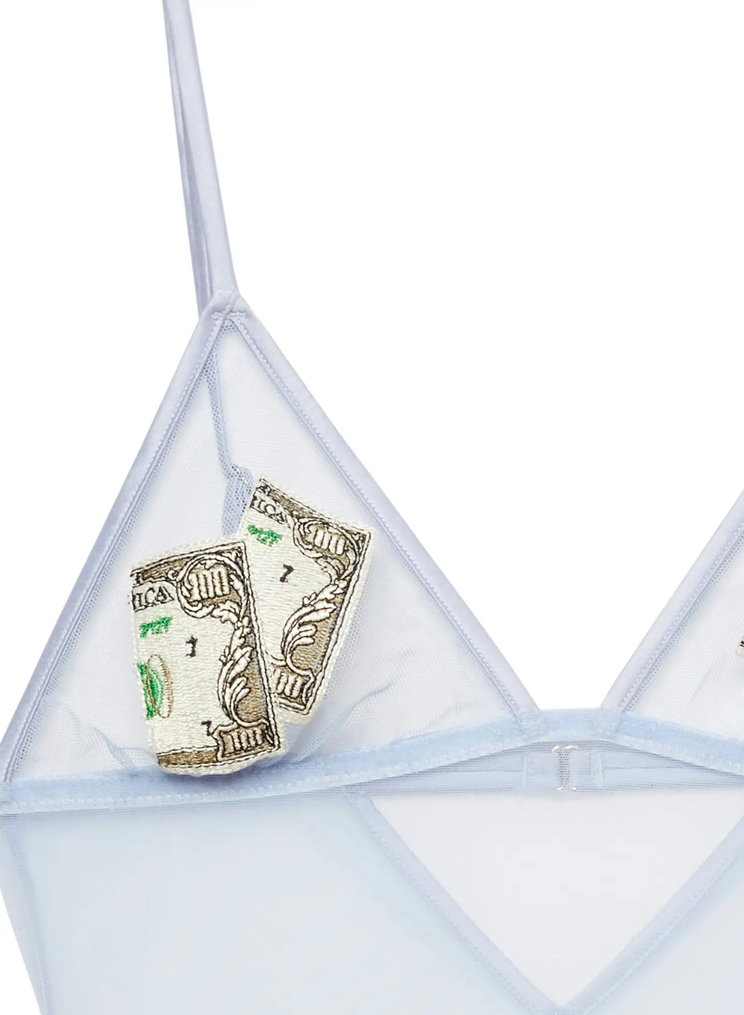 Fleur Du Mal Big Spender Embroidery Bodysuit -Lingerie Store moneybodysuitblueflat1
