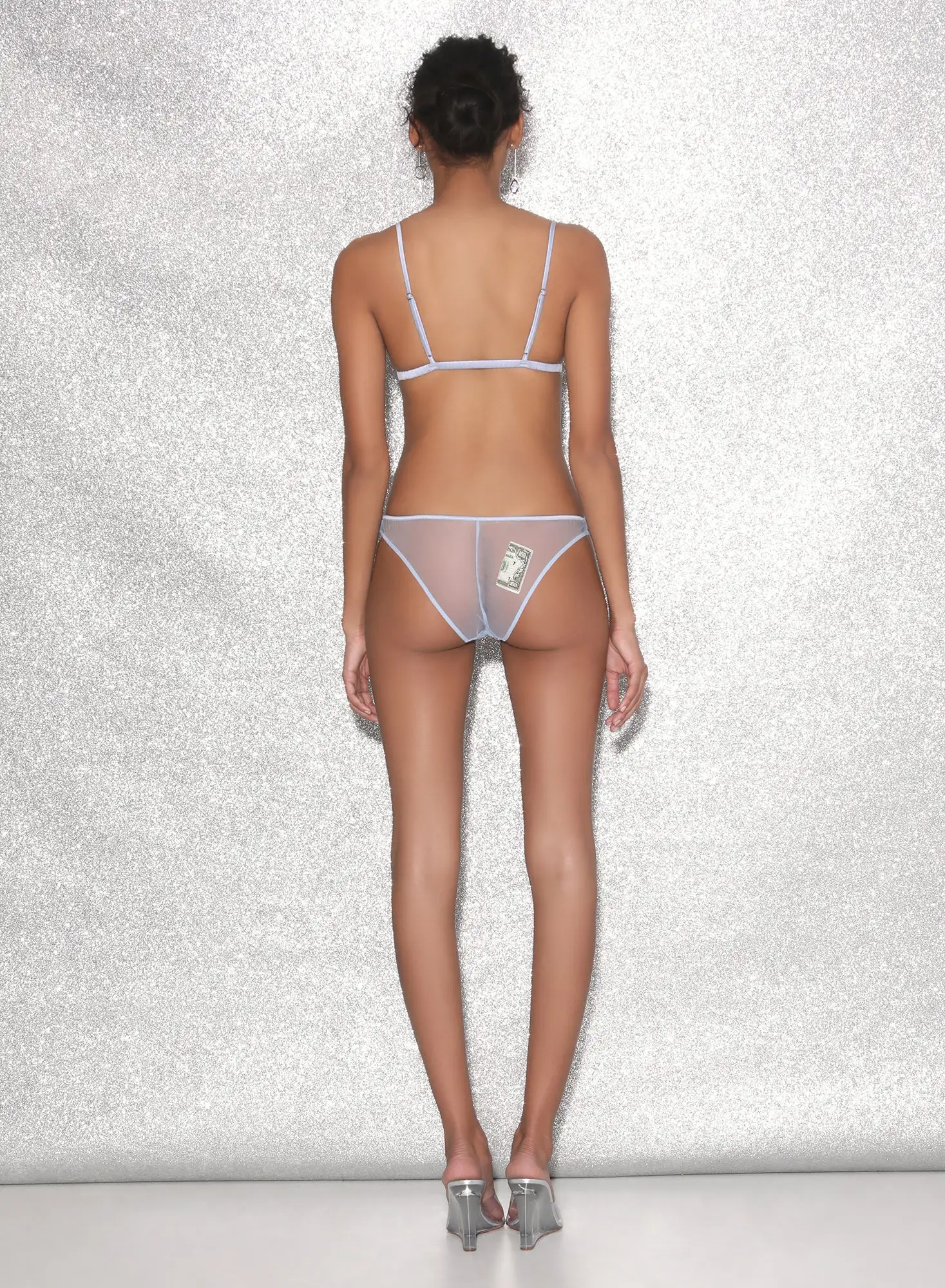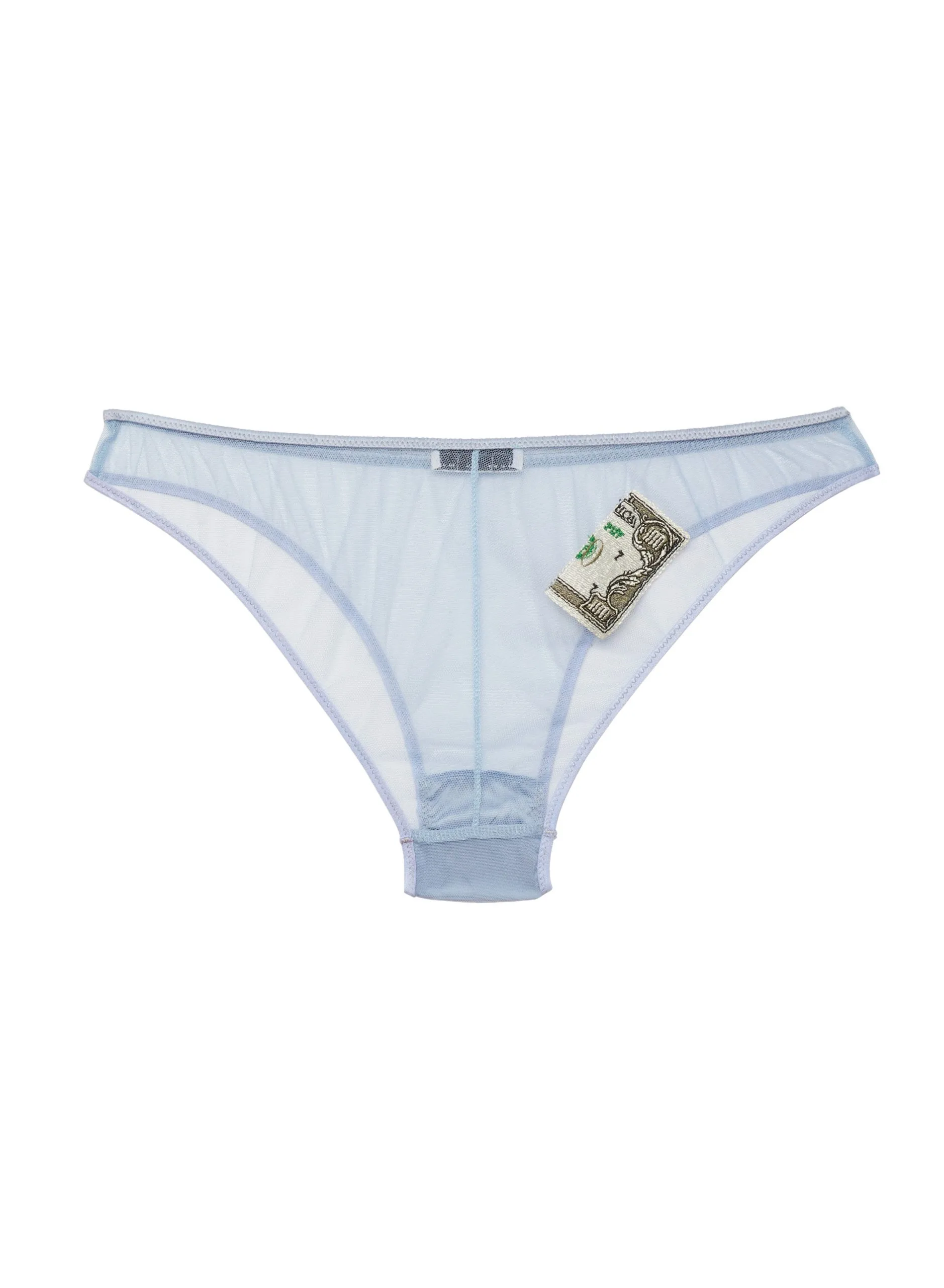 The money spot. Our Big Spender Embroidery Cheeky, featuring custom cash embroidery on sheer tulle ground. Features luxe silk trim and flirty cheeky cut. Complete this seriously sexy set with the matching Big Spender Embroidery Triangle Bra.
