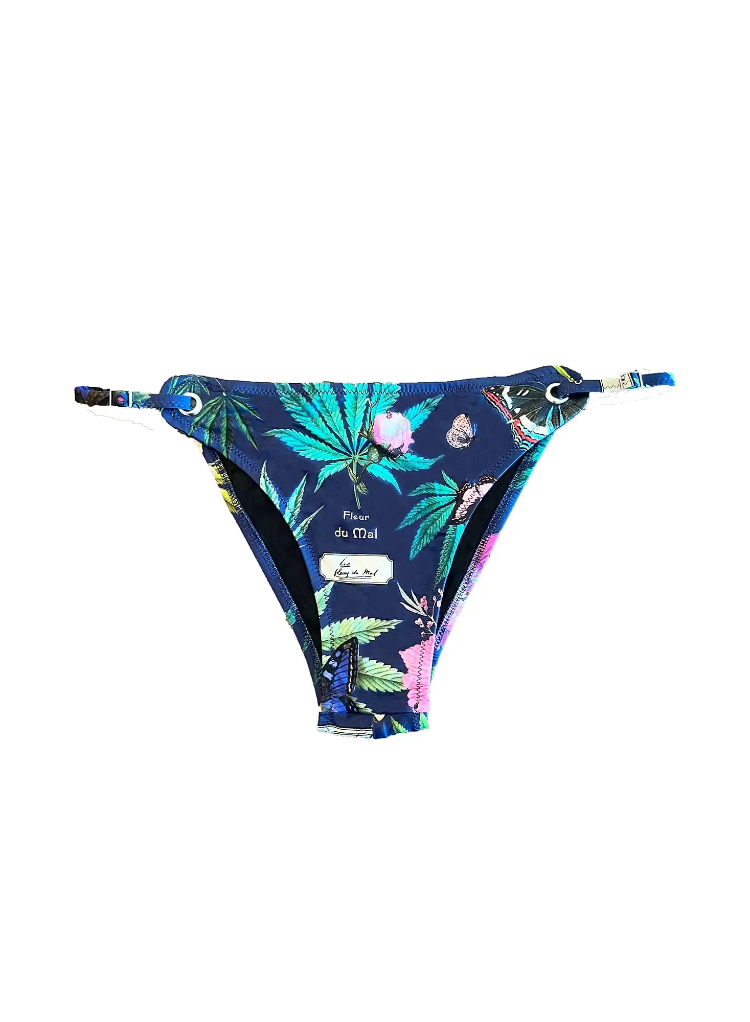 Smoke show. Our Botanical Grommet Bikini Bottom in our bestselling, cannabis-inspired print. Features cheeky cut with adjustable side strings and grommet hardware detailing. Cut from stretch fabric that hugs and shapes. Fully lined. Complete the look by pairing it with the matching Botanical Grommet Triangle Bikini Top.