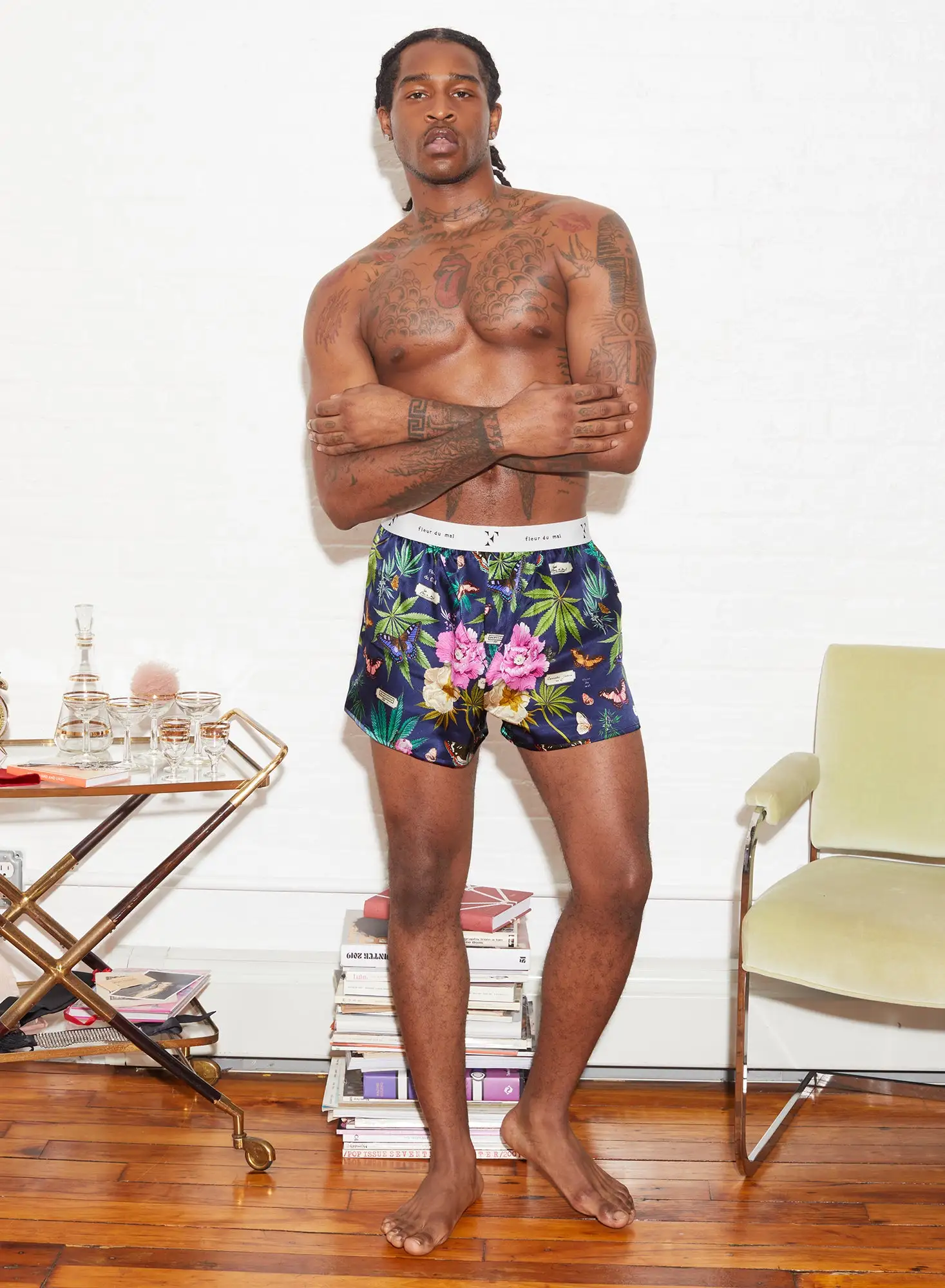 His & hers. Our ultra luxe silk Unisex Boxer Short in our classic, cannabis-inspired botanical print. Gender neutral with a comfortable fit. Elastic logo waist band and fly vent.