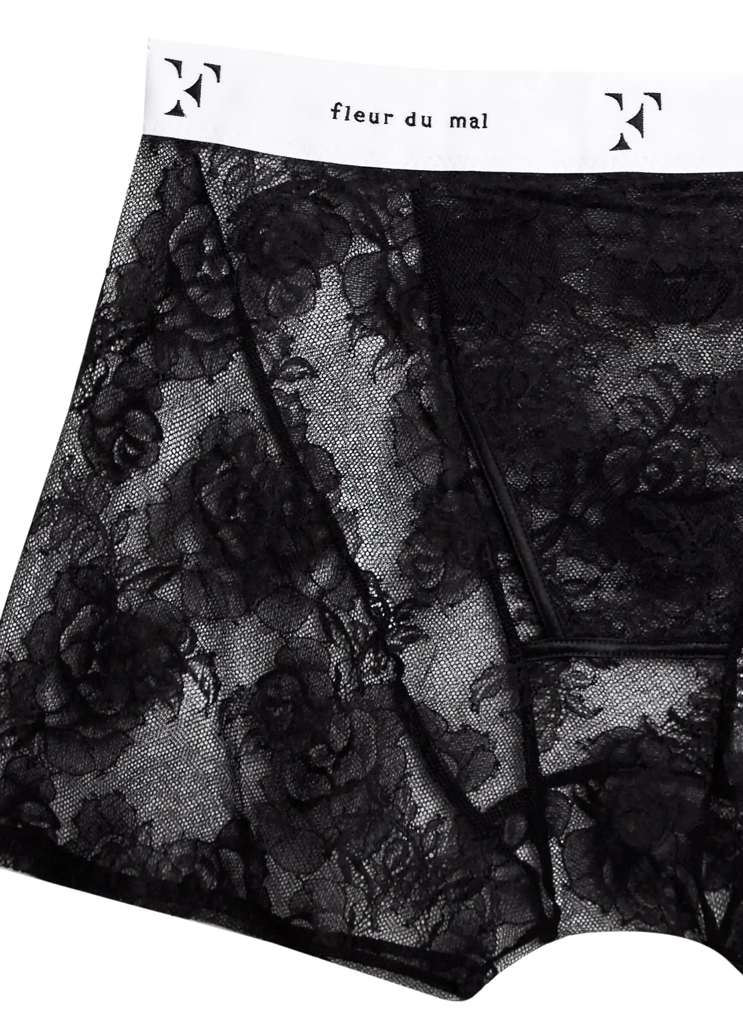 Better together, baby. Our ultra flirty Bouquet Lace Boxer Brief, cut from stunning French leavers lace. Comfortable fit with elastic logo waist band and cotton gusset. Pair it back to the matching Bouquet Lace Scooped Balconette Bra.