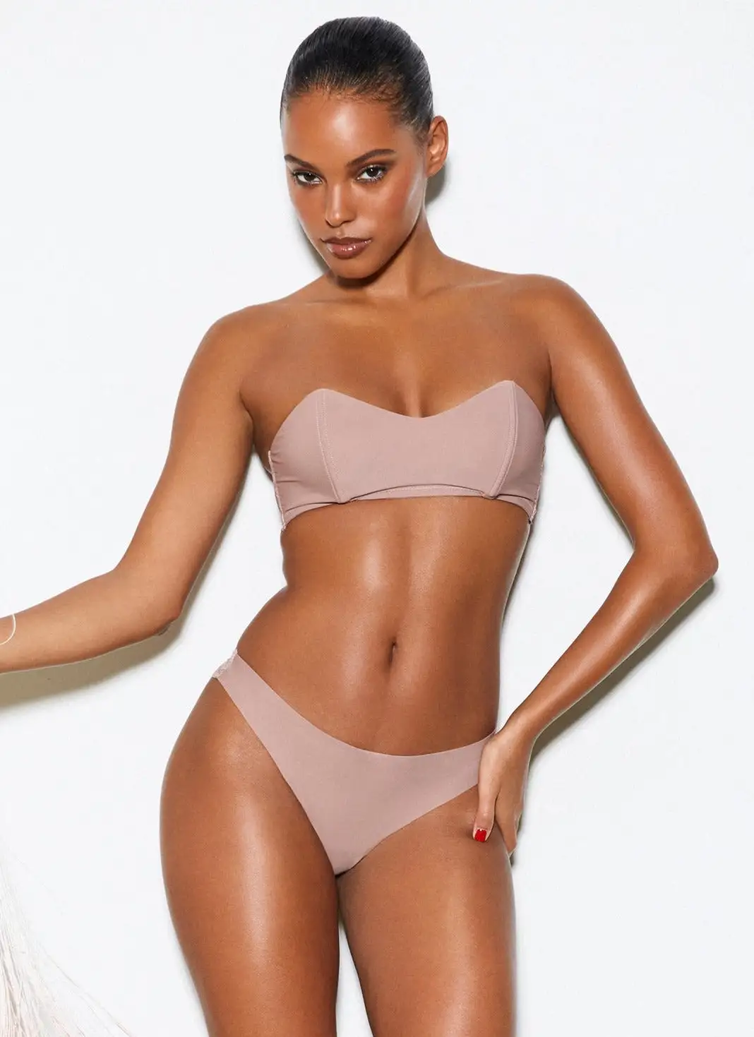 Our new strapless bra is anything but basic. Featuring a modern sweetheart neckline, lace wings, and boning to provide shape and support. Pair with the Charlotte High Waist Bottom or the Charlotte Lace Seamless Thong for a seamless look under clothes.