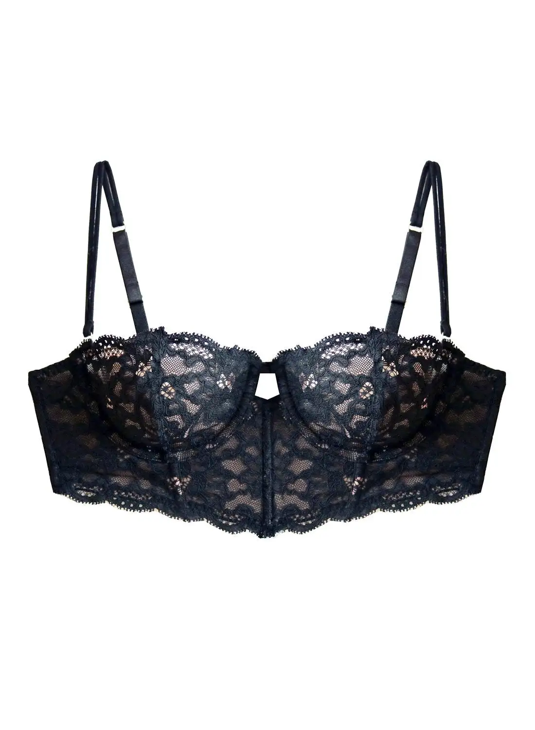 Our obsession, updated. Stretch lace longline balconette bra with peekaboo cut out detail and scalloped edges that hug your body. Pair with the Charlotte Lace Seamless String Cheeky or the Charlotte Lace No Show V-String.