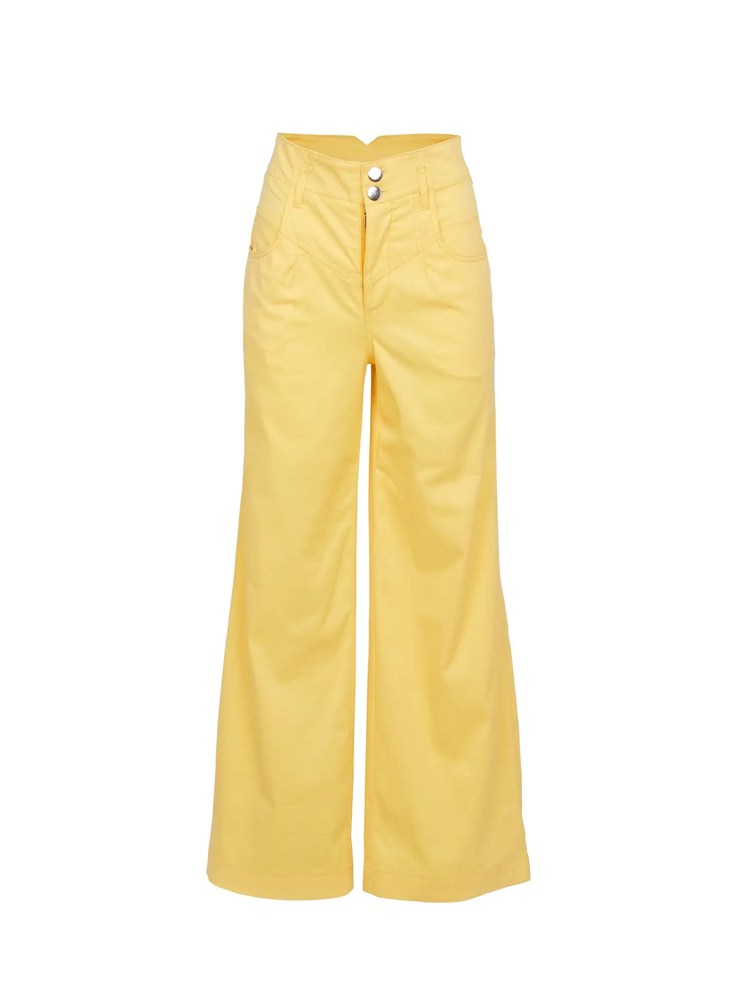 Bottoms up. Our Cotton Wide Leg Jean with wide waist yoke and v notch at back. Double needle topstitch detailing through out with angled back pockets to highlight your best assets. Ultra flattering high waist, wide leg fit. We love it paired with Jardin Embroidery Longline Demi Bra.
