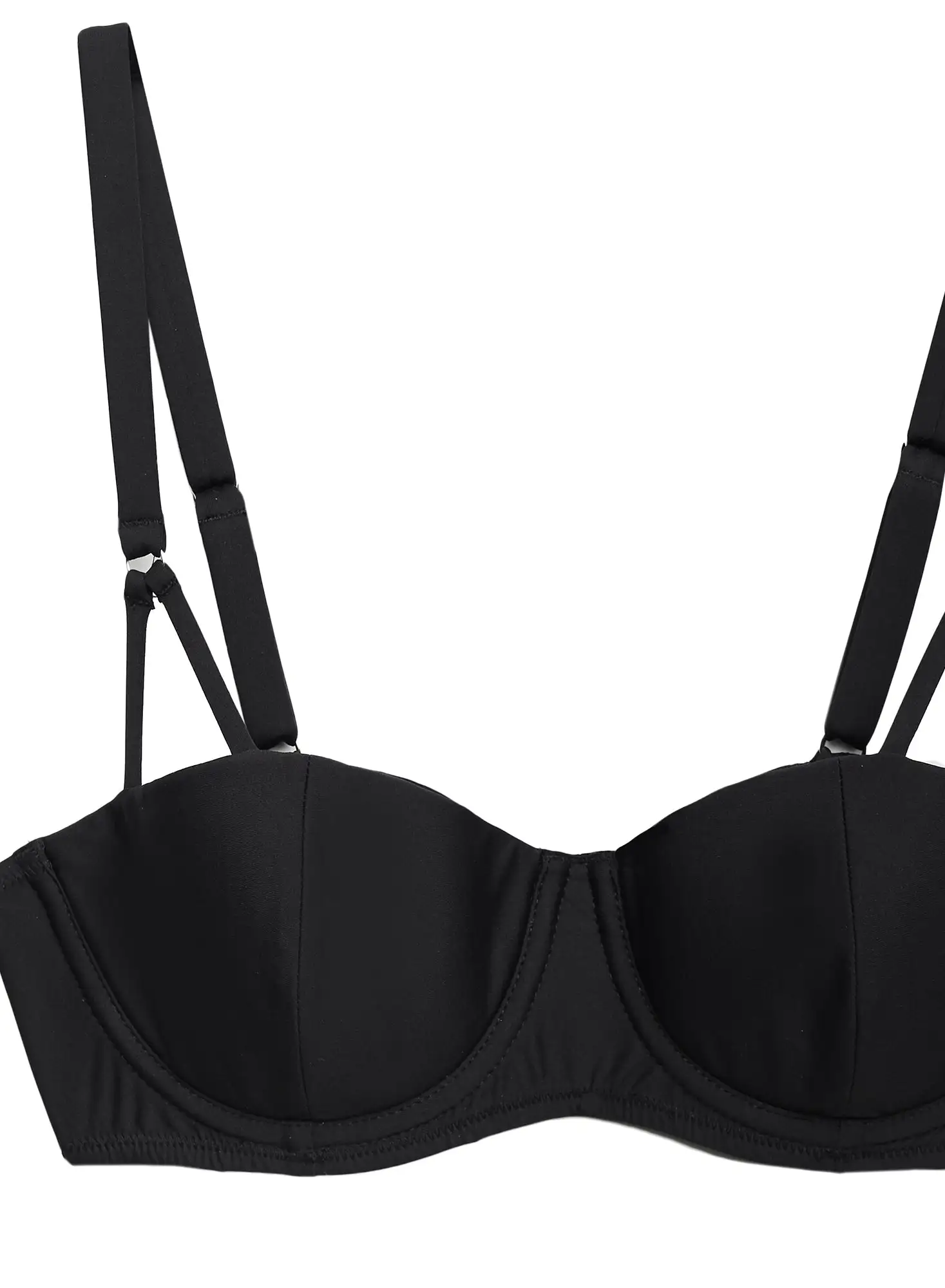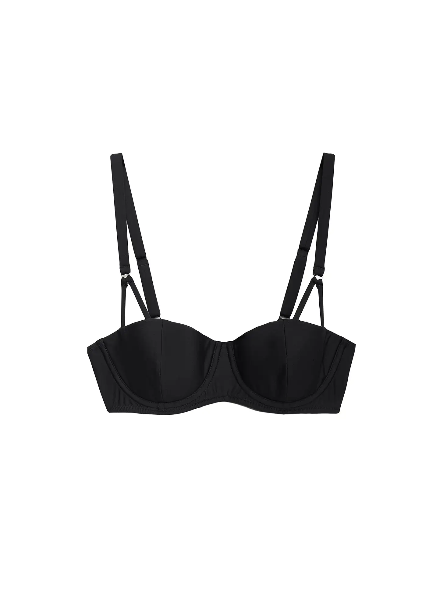 Your new swimwear essentiel. Our Cup Sized Swim Top is bra sized top for a perfect, supportive fit. Features foam lined underwire cups with adjustable straps and ring detail at top cup. Sexy double strap back. Looks perfect with the matching Grommet Bikini Bottom and Orchid Wrap Dress.