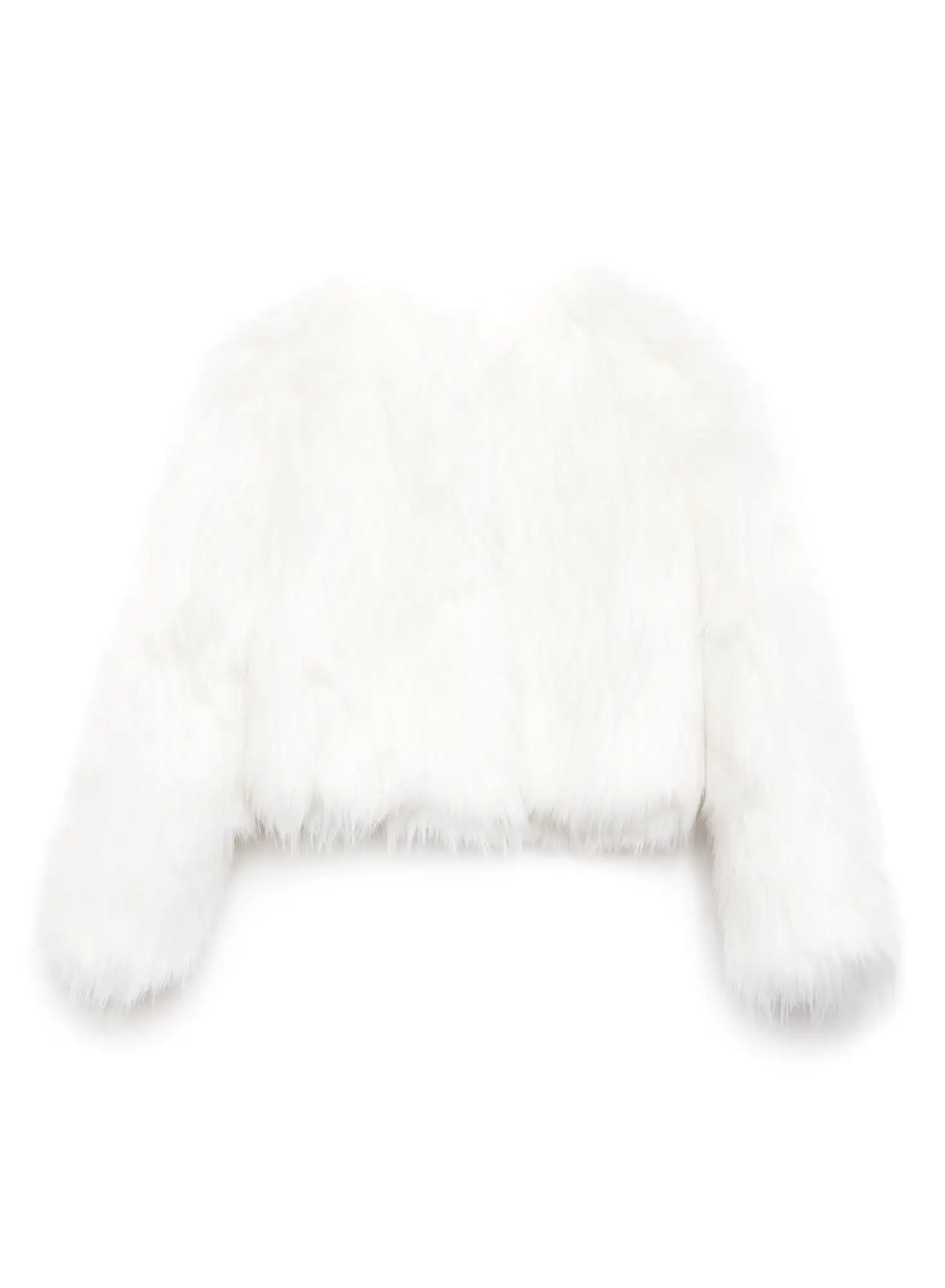 Faux real. Our ultra luxe Faux Fur Cropped Jacket made from super soft Italian faux fur. Long sleeves with flirty cropped length. Fully lined. Take it out with the Strapless Draped Dress.