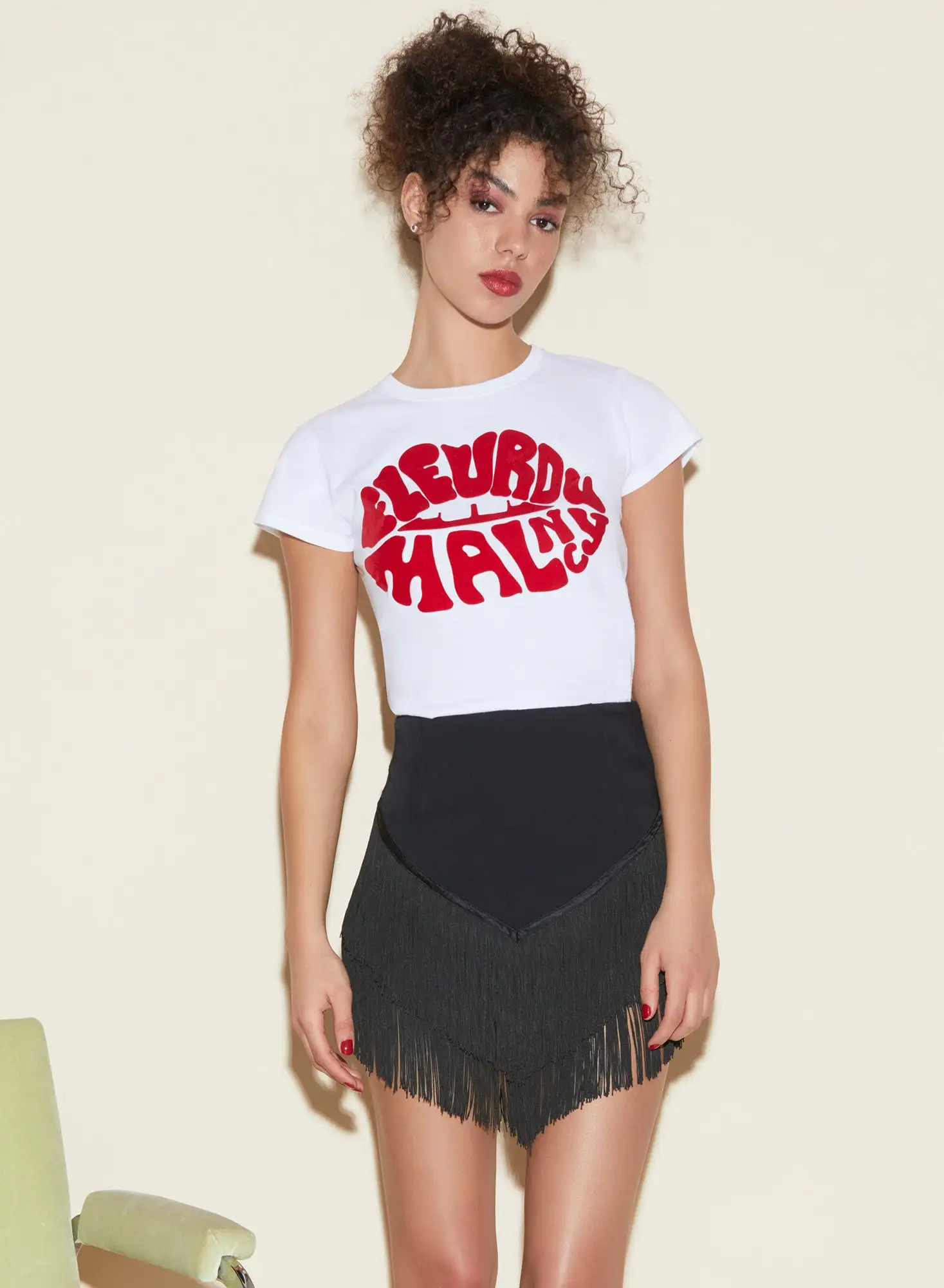 Read my lips. Our ultra-comfy Fleur Du Mal Logo crew neck t-shirt, cut from 100% organic cotton. Relaxed fit. Looks chic taken out with the Fringe Skirt, or lounging with the Lily Embroidery Hipster Thong.