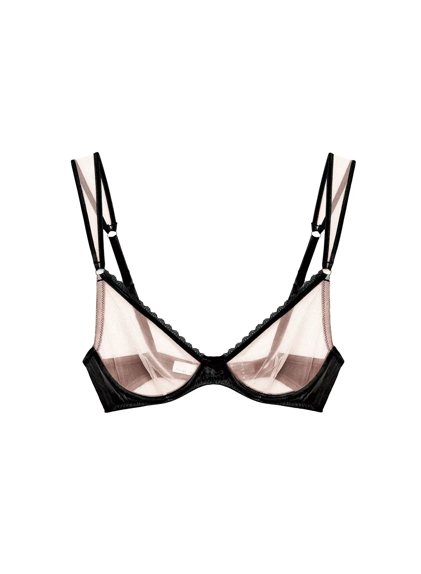 Sneak a peek. Our Framed Demi Bra features sheer, stretch tulle cups trimmed in Silk. Underwire cups for support, and with Silk-framed wider straps. Scalloped edge. Solid stretch Silk wings with back hook and eye closure for a customized fit. Complete the set with the matching Framed Thong.