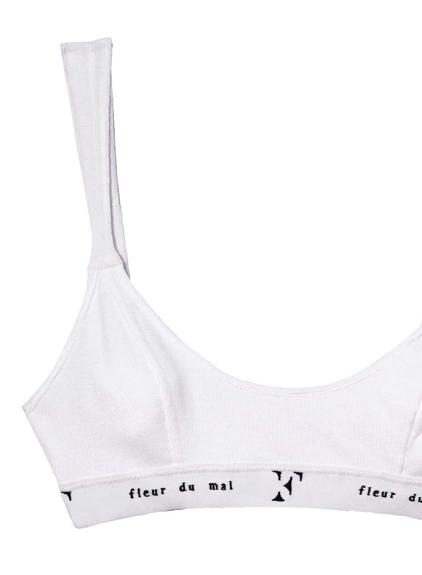 Our Garçon Bra is cut sporty with Fleur du Mal signature branded double elastic band, showing off a bare midriff. Pair with the matching Garçon Cheeky for the full look.