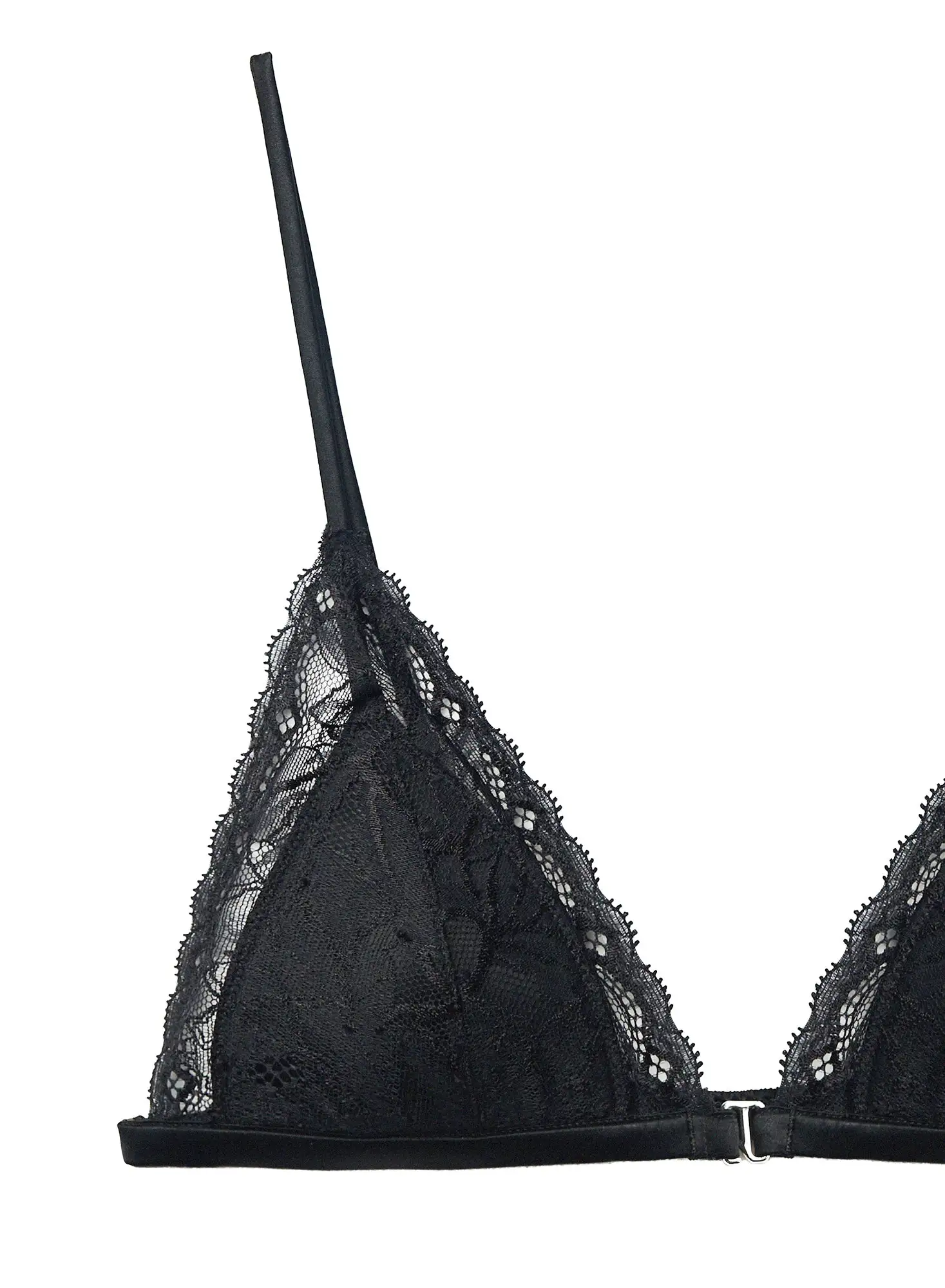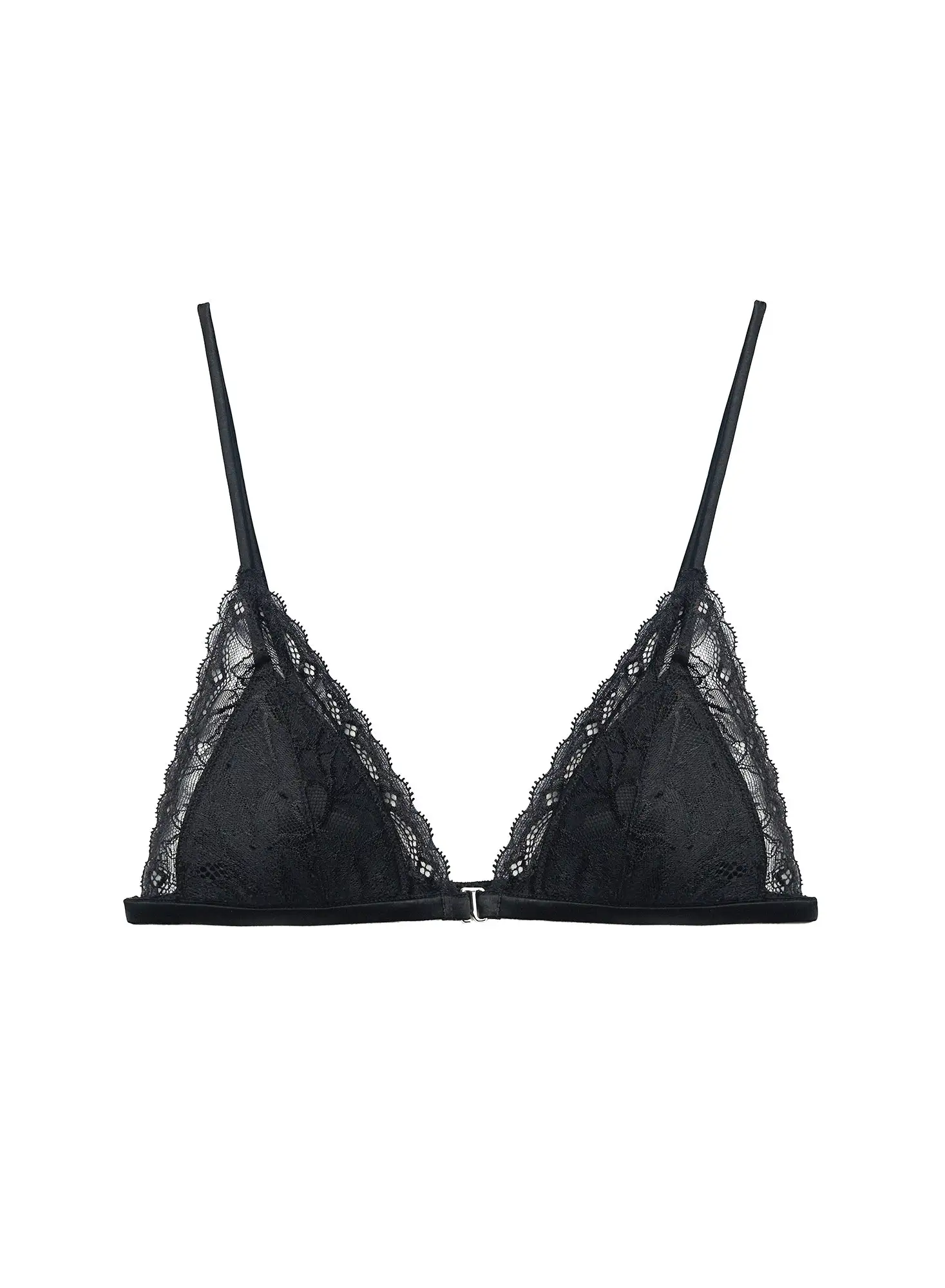 Irresistibly classic. Soft cup triangle bra with beautiful floral lace overlay. Features hook closure at the front. Light padding and adjustable straps. Complete the look with matching Gardenia Lace Thong.