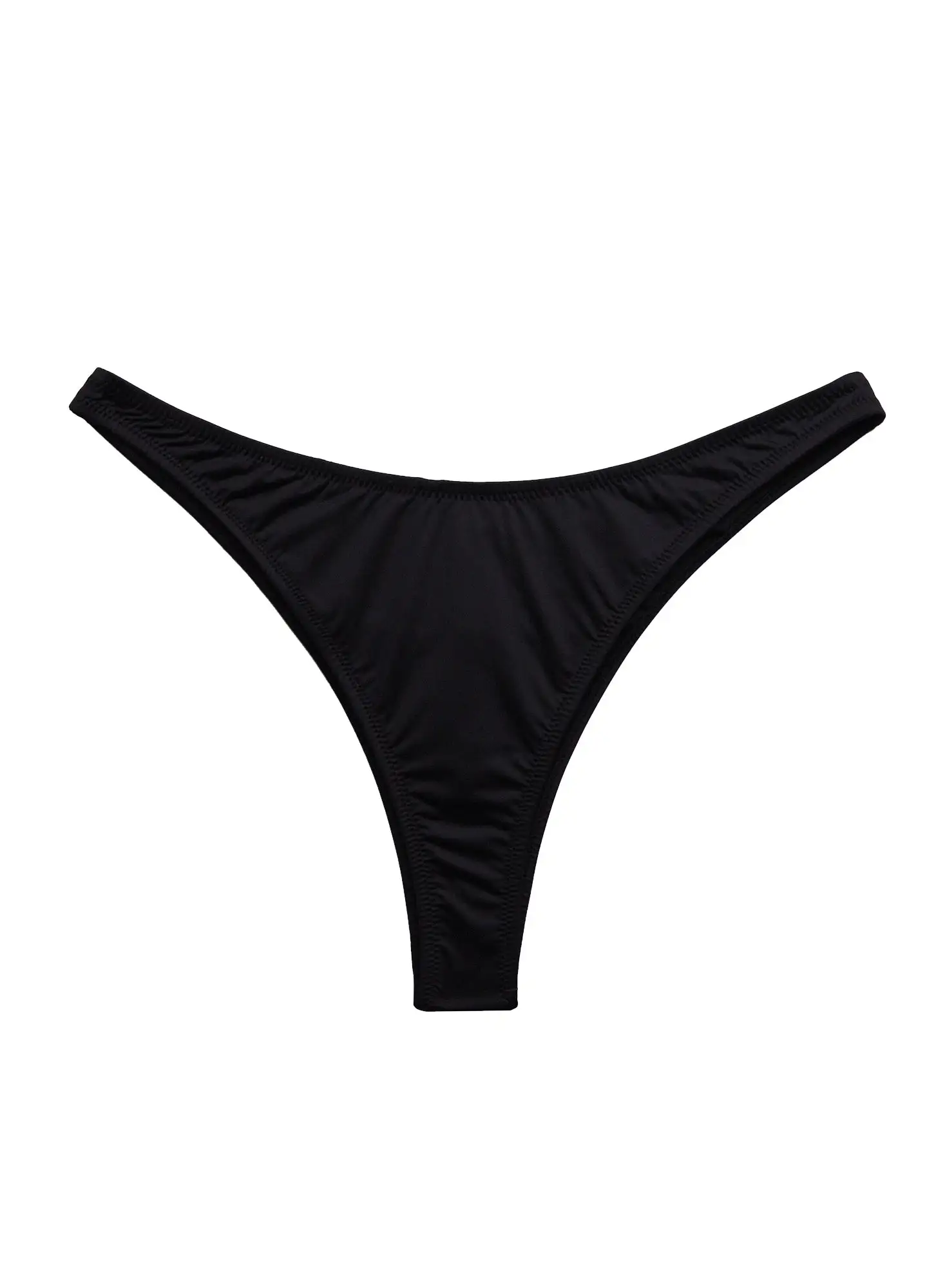 Our smokin’ hot High Leg Bikini Bottom in black. Stretch fabric hugs and shapes. A less is more silhouette with an ultra-cheeky cut. High leg with back keyhole which features Fleur logo engraved hardware detailing. Fully lined. Complete this set with the black Balconette Bikini Top.