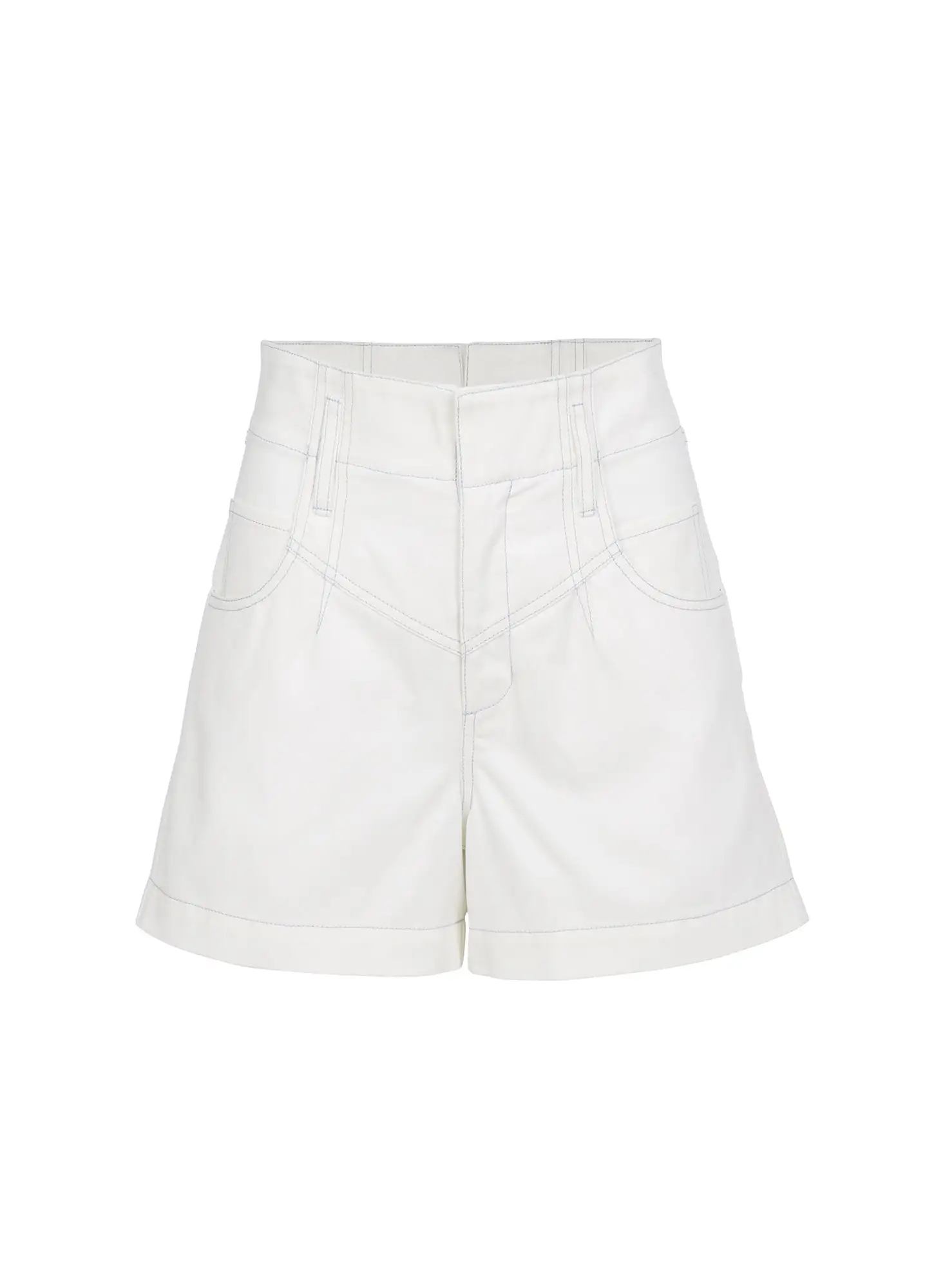 Short cut. Our High Waist Twill Short features a super flattering waist yoke and v notch at back. Double needle pastel blue topstitch detailing throughout with cheeky Fleur du Mal embroidery on the back. Ultra flattering high waist fit. Show some skin with the Dotty Tulle Bra.
