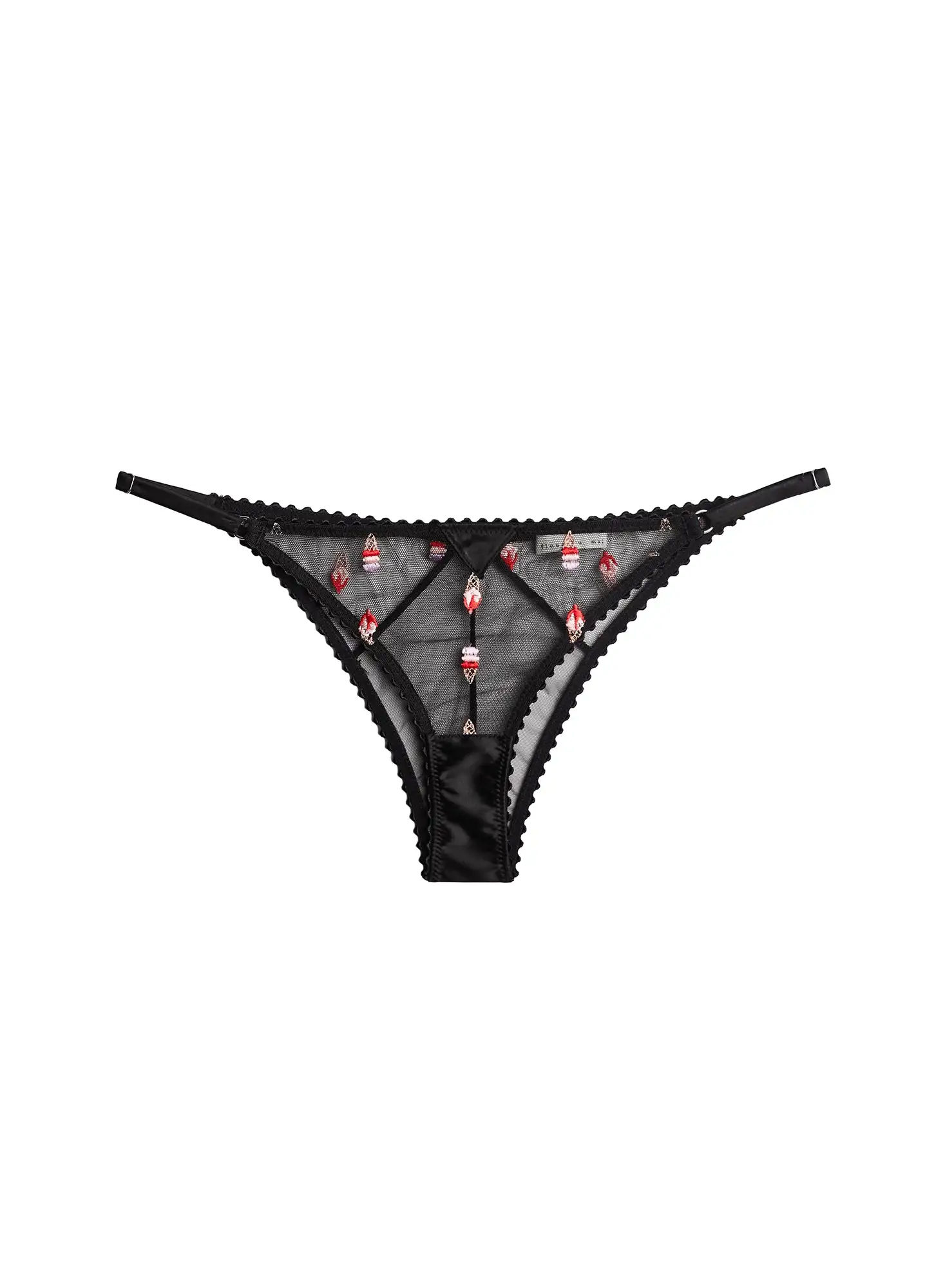 Good enough to eat. Our Ice Cream Embroidery Cheeky features playful custom ice cream cone embroidery on mesh ground. Flirty back bow detail and cheeky fit. Adjustable side straps for the perfect customized fit. Complete this mouthwatering set with the matching Ice Cream Embroidery Demi Bra and Garter Belt.