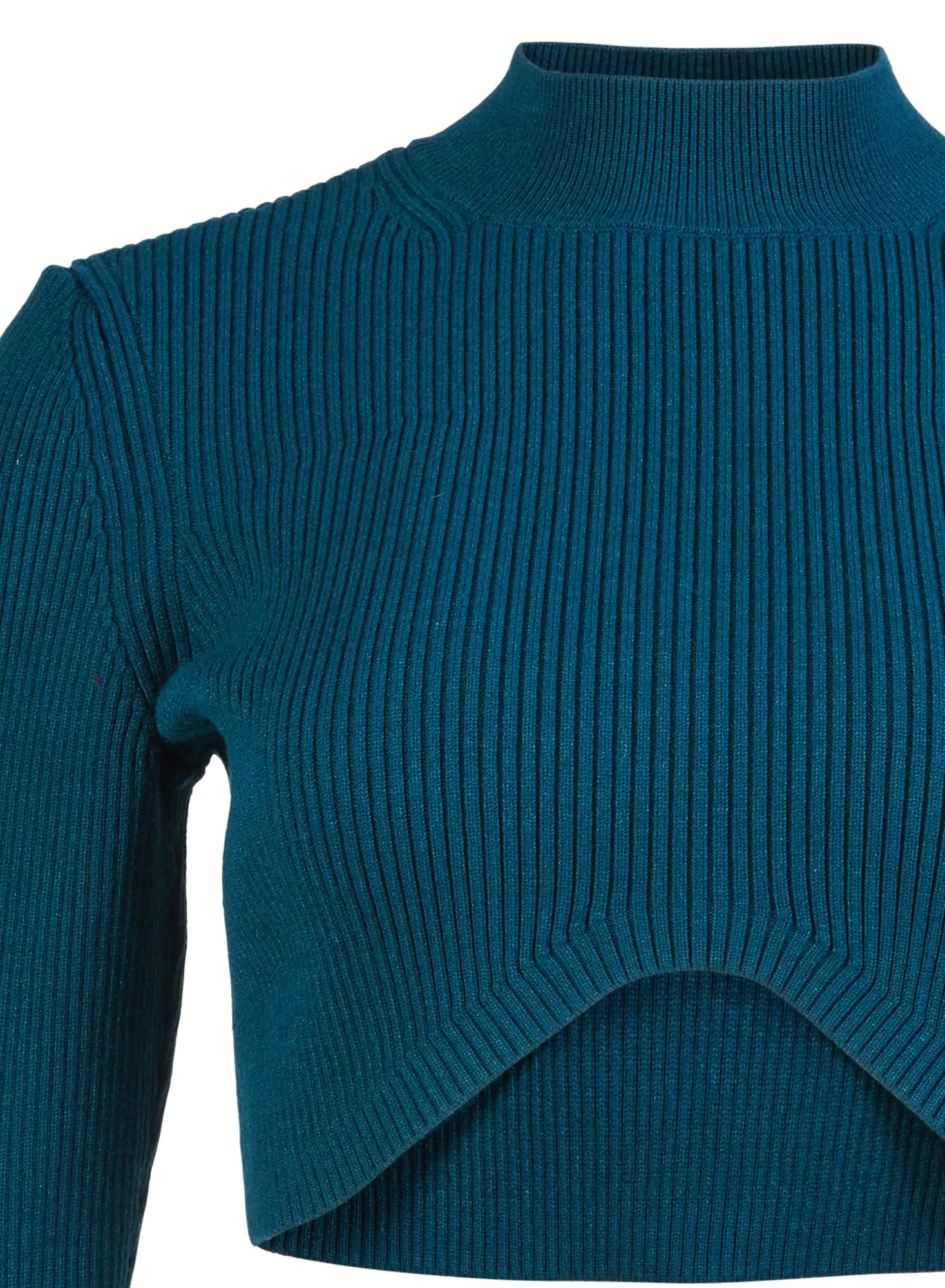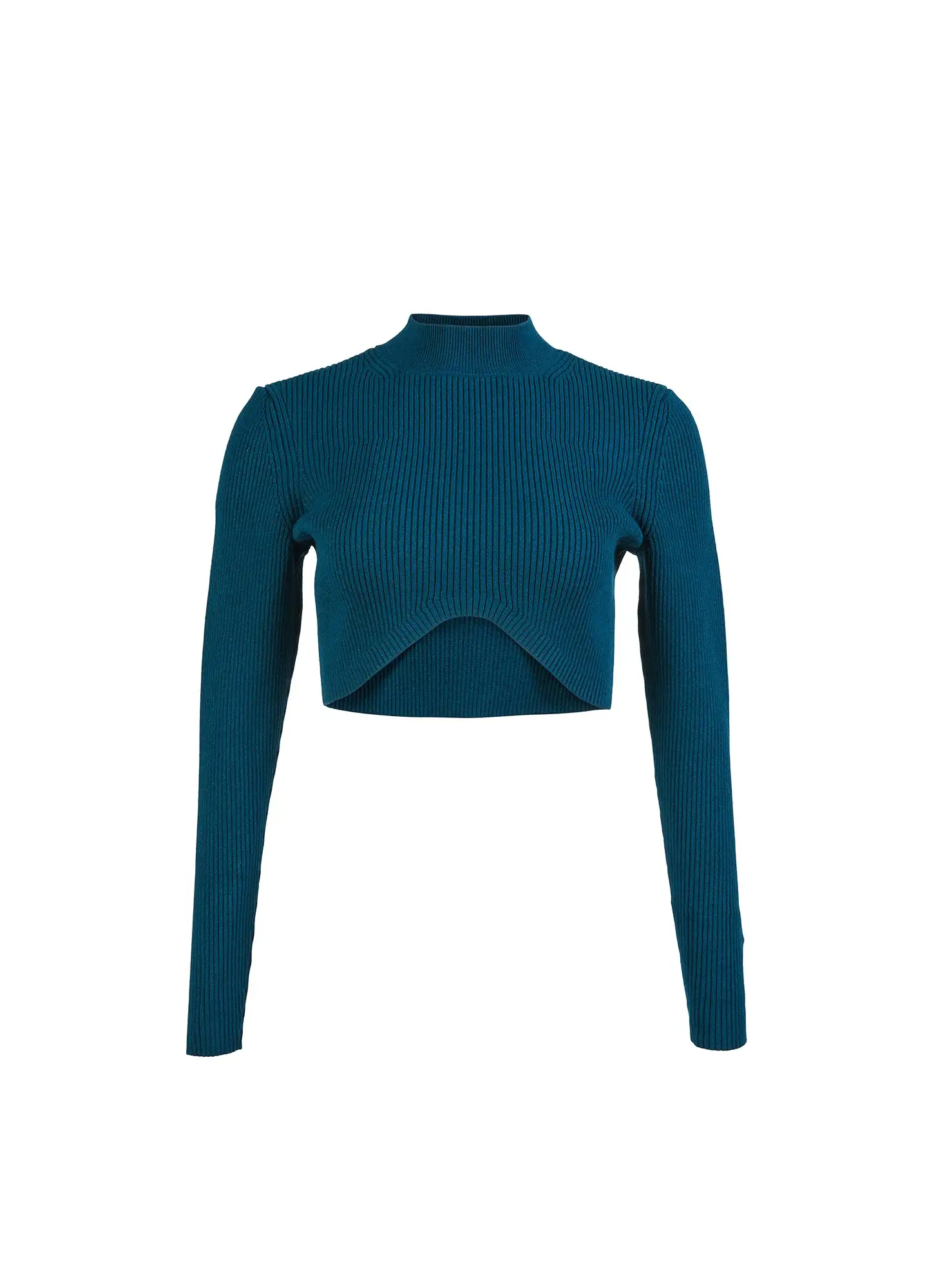Ribbed, for your pleasure. The Knit Cropped Turtleneck, cut from our luxe, ribbed knit material that hugs the body. Features flirty cropped length with curved hem and long sleeves. Complete the set with the matching Knit Flared Mini Skirt.