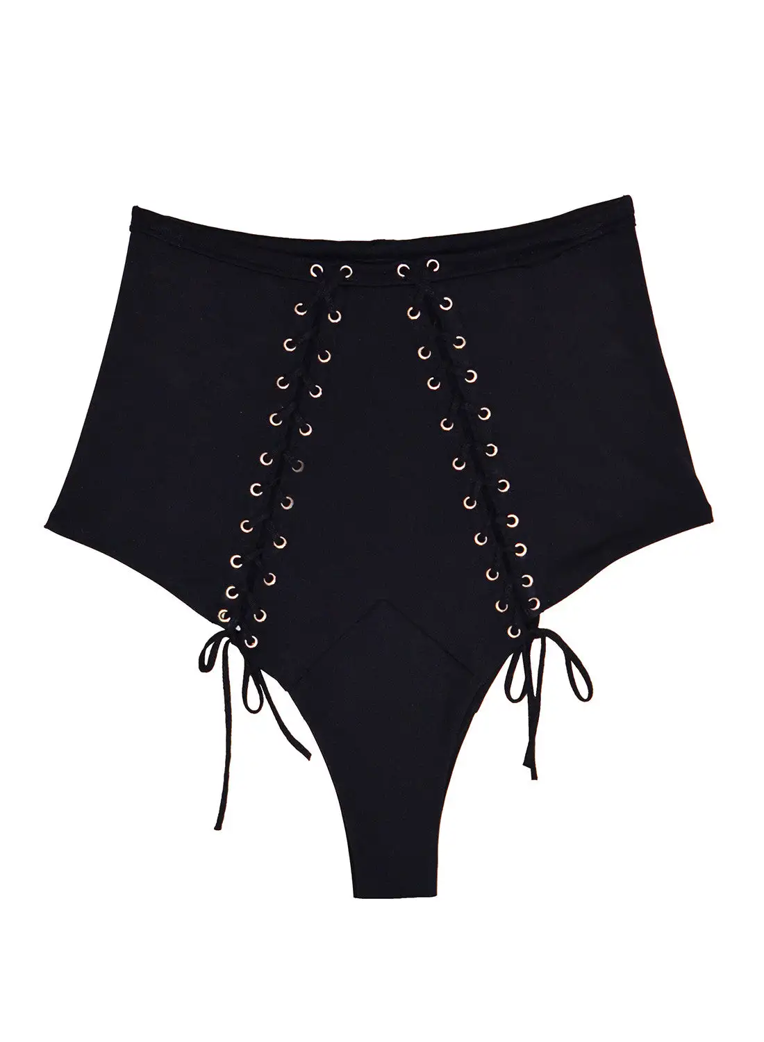 The sexiest high waist bikini you’ll ever wear, with lacing detail that shows just enough. Italian stretch fabric shapes and holds, accentuating your waistline. Fully lined. Pair with the matching Lacing Back Bandeau.