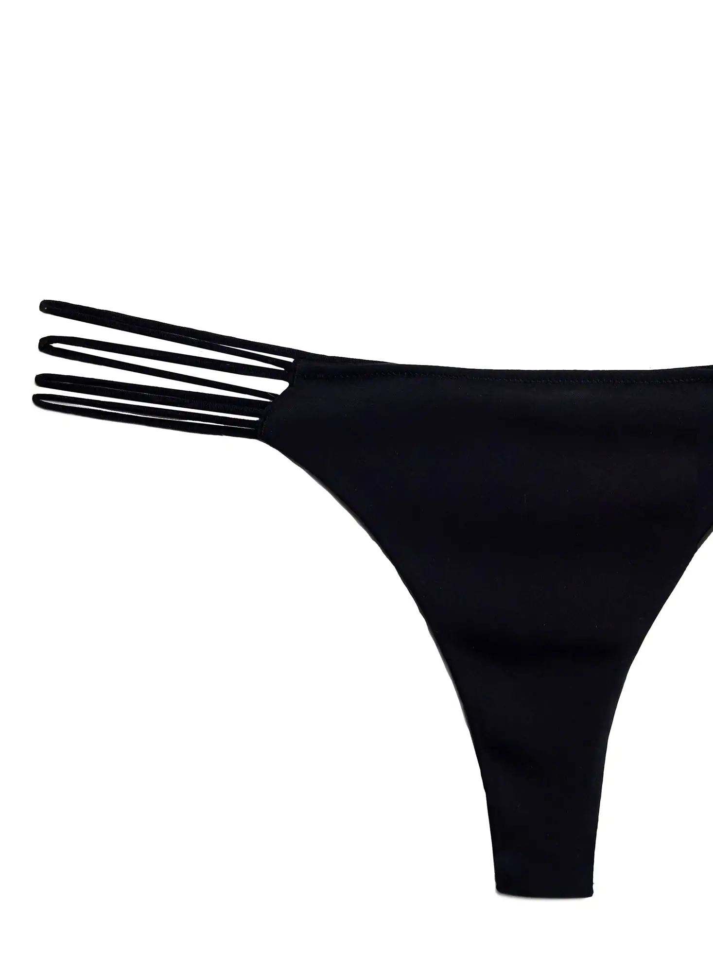 No strings attached. Our black Laced Thong with strappy side detailing. Pair this head turner with the matching Laced Triangle Bra.
