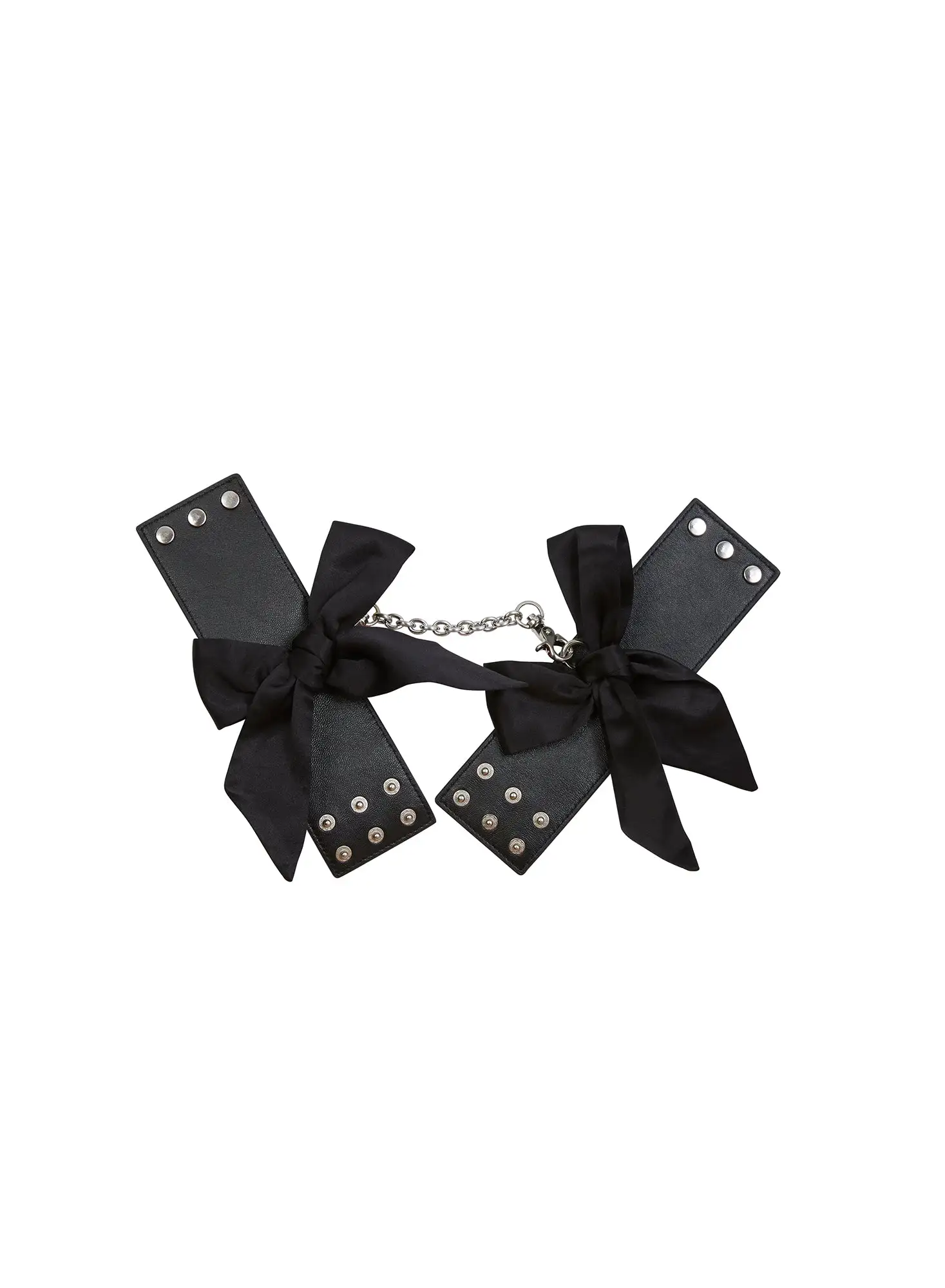 The pleasure’s all mine. Heat things up with our Leather Cuffs with Silk Bows. Leather cuffs feature flirty silk bow accents and detachable chain. Adjustable snap closure. Get tied up with the Charlotte Peekaboo Bra and Crotchless Panty.
