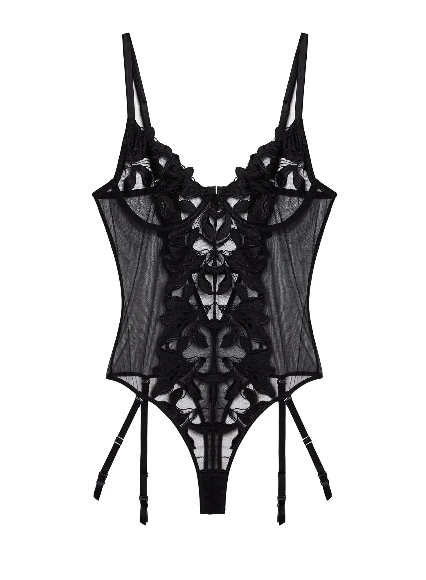 Fleur Du Mal Lily Embroidery Cupped Bodysuit