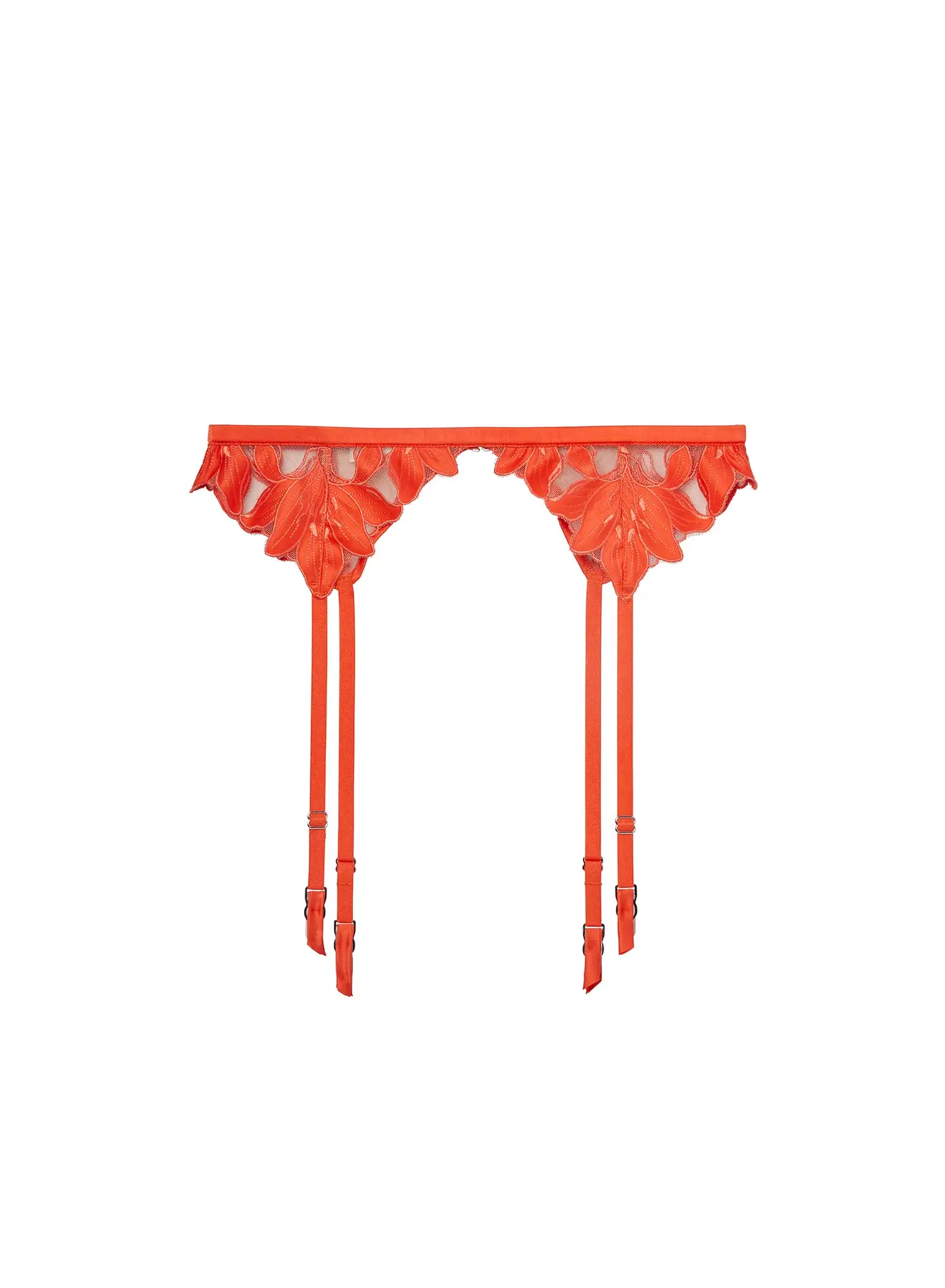 Our Lily Embroidery Garter Belt is the perfect addition to any bra & panty set. Features our signature lily embroidery with mesh paneling. Center back closure sits at waist. Pair with the matching Lily Embroidery Plunge Demi Bra and Hipster Thong for an immaculate set.