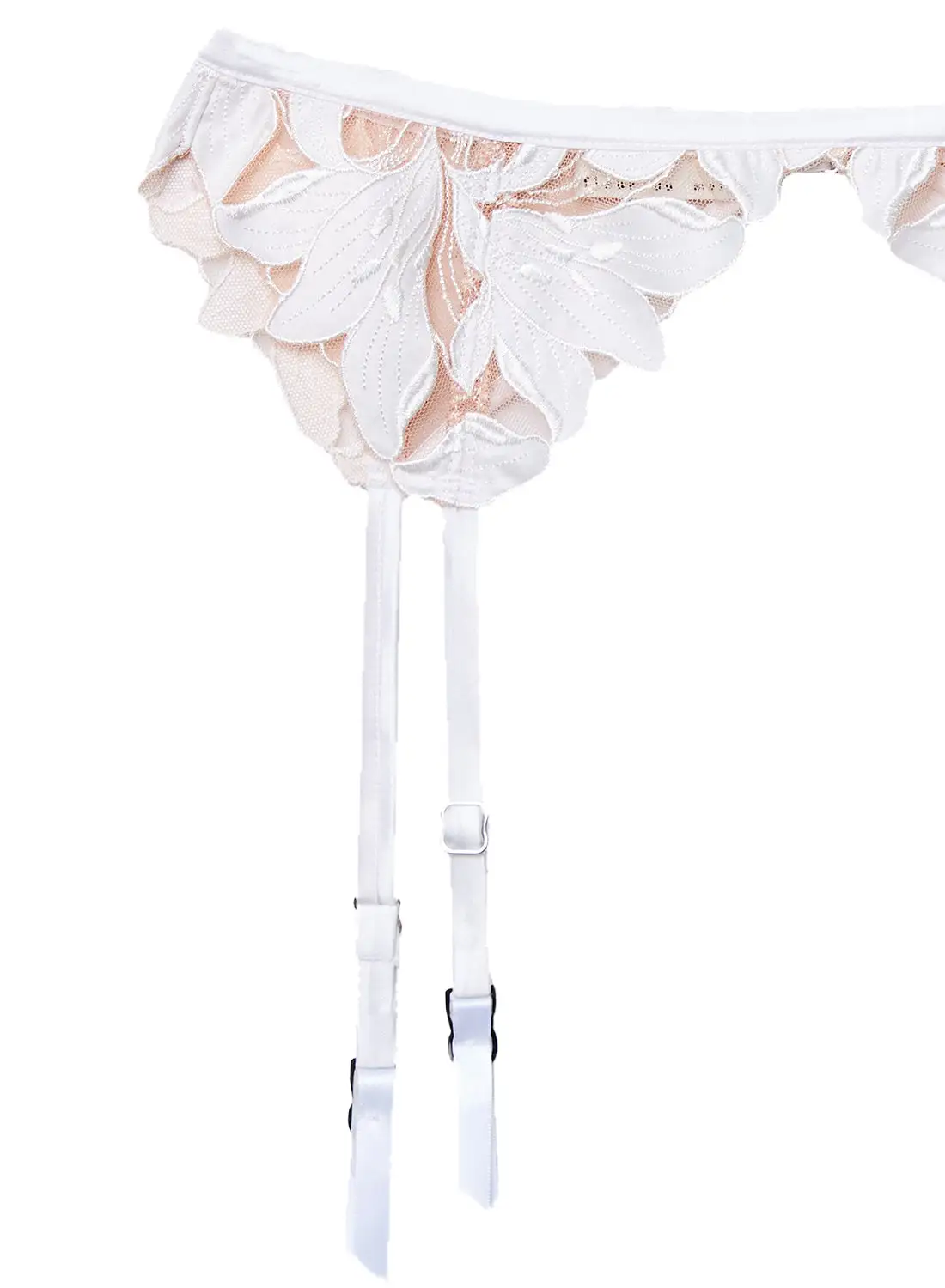 Our Lily Embroidery Garter Belt is the perfect addition to any bra & panty set. Features our signature lily embroidery with mesh paneling. Center back closure sits at waist. Pair with the matching Lily Embroidery Plunge Demi Bra and Hipster Thong for an immaculate set.