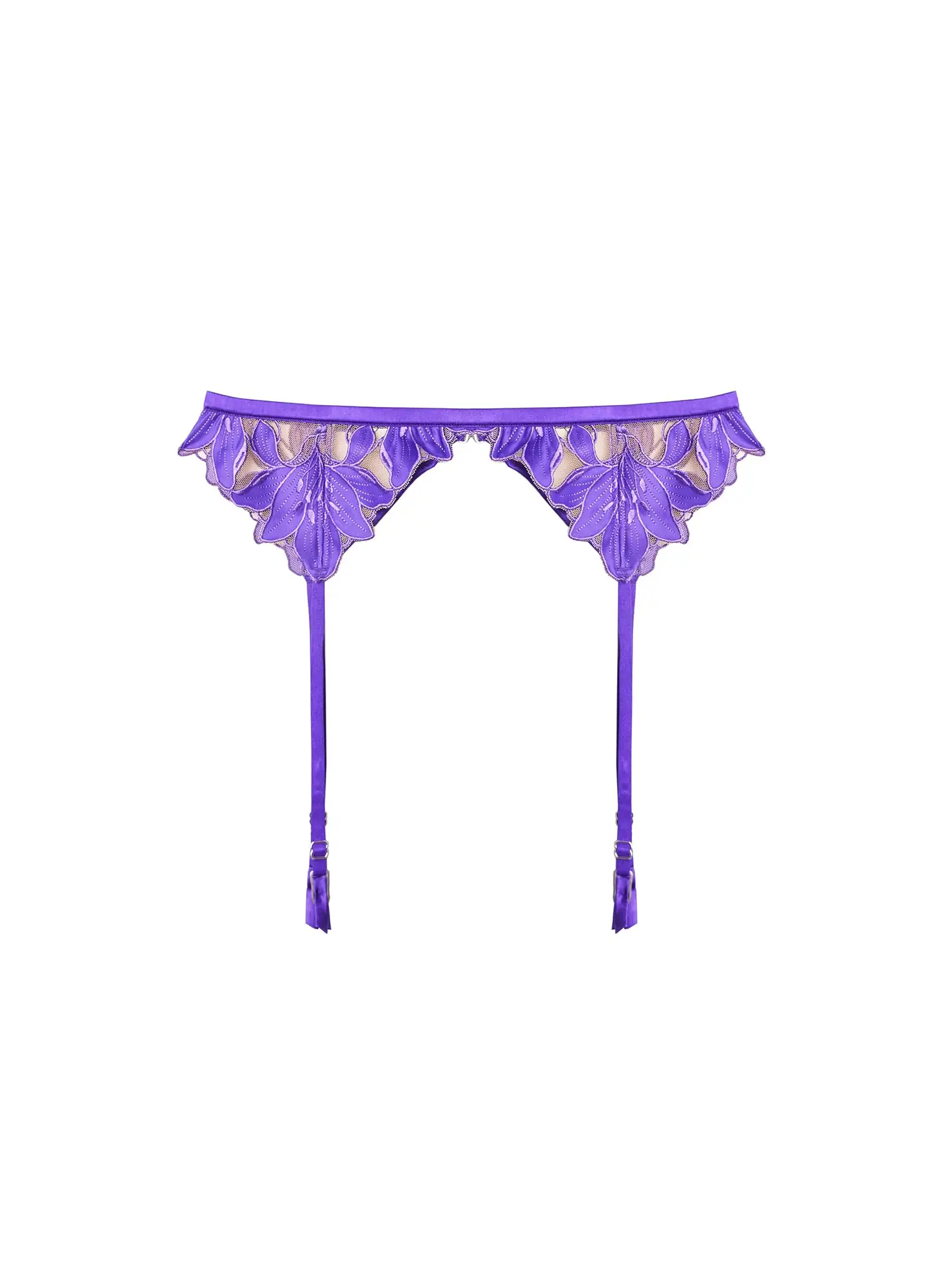 Our Lily Embroidery Garter Belt is the perfect addition to any bra & panty set. Features our signature lily embroidery with mesh paneling. Center back closure sits at waist. Pair with the matching Lily Embroidery Plunge Demi Bra and Hipster Thong for an immaculate set.