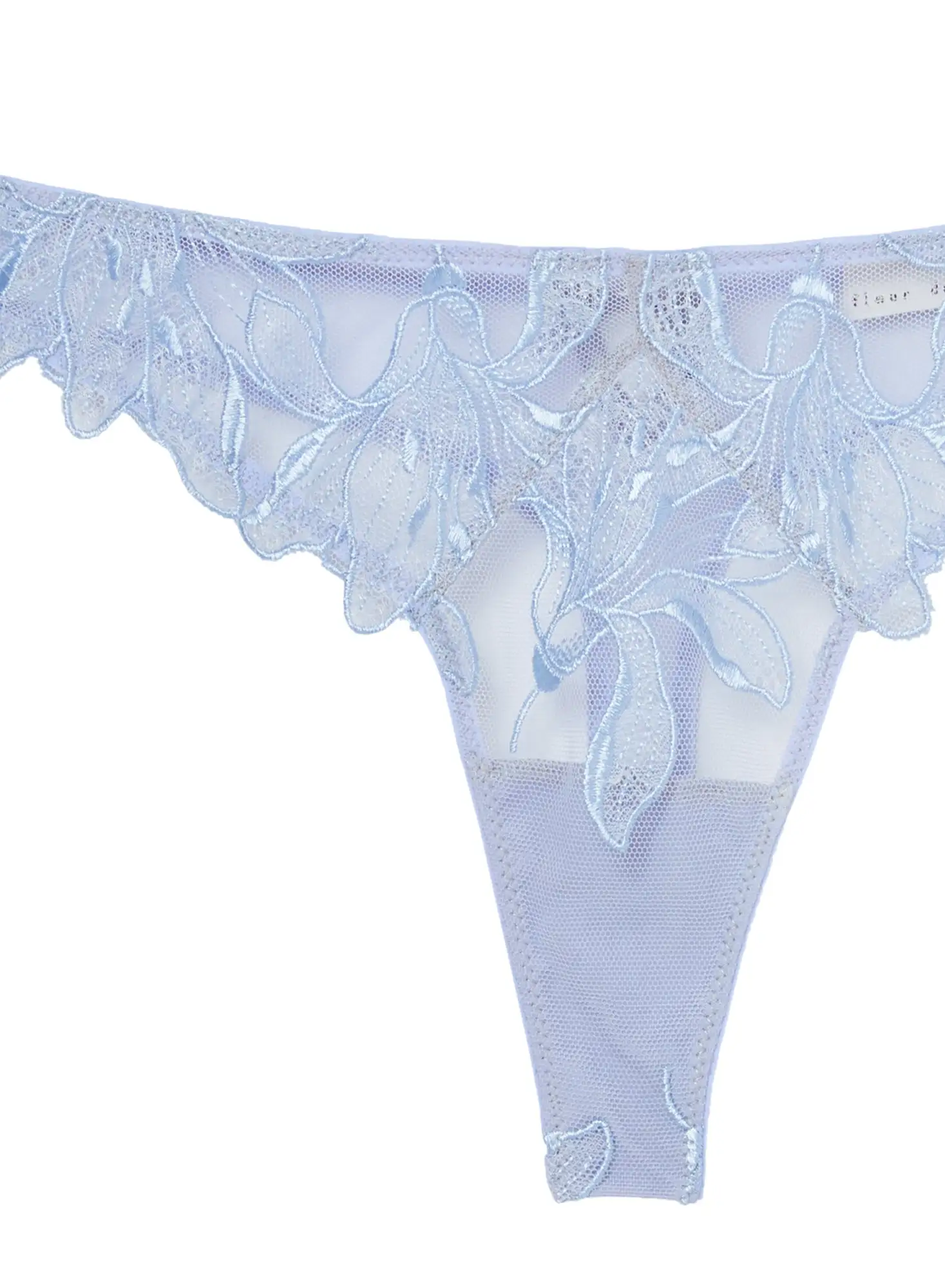 A vibrant take on our classic Lily Embroidery Thong. Features large embroidered lilies with flirty scalloped edges and mesh back. Pair it back to the matching Lily Embroidery Plunge Demi and Garter.