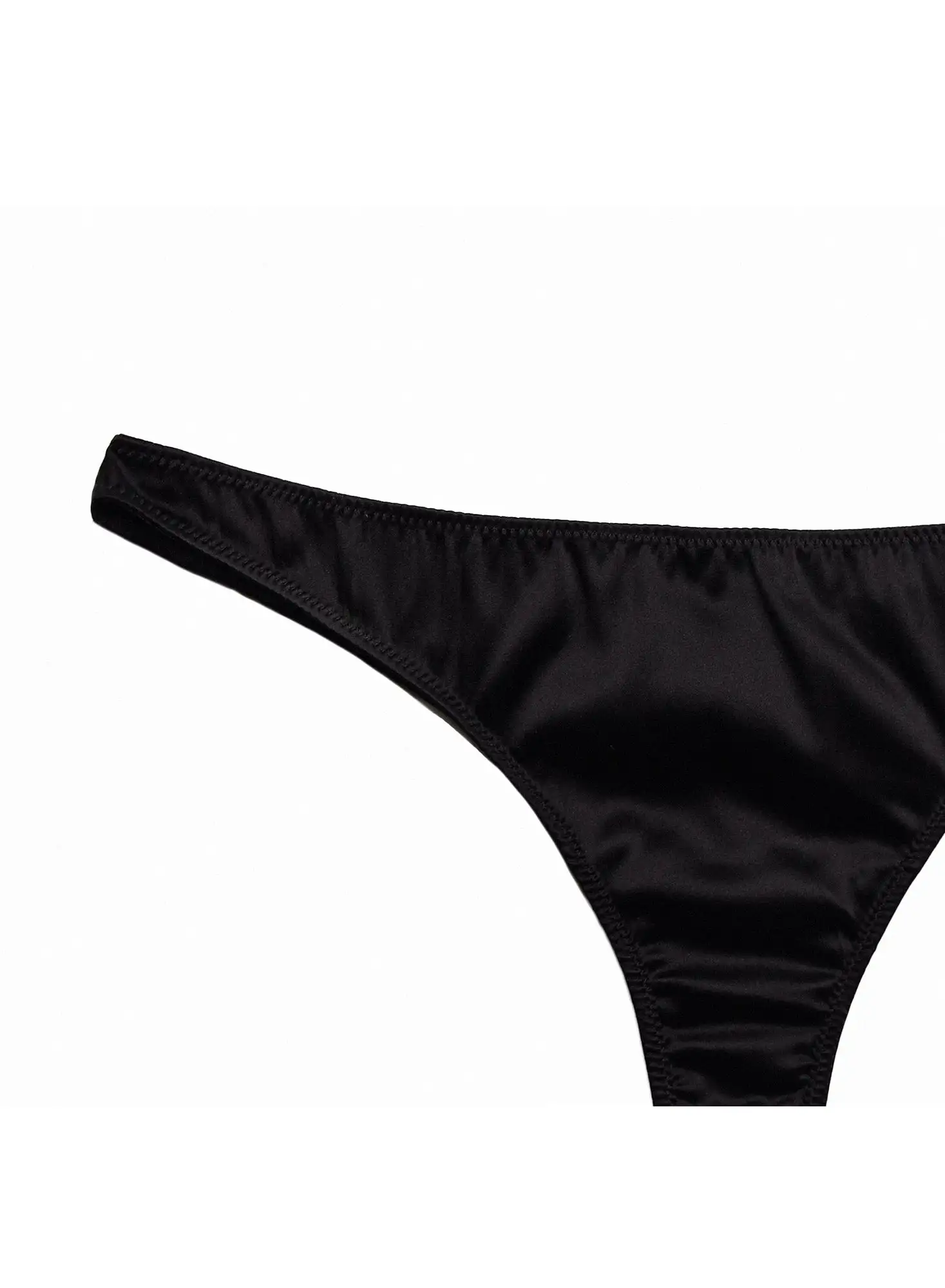 Our favorite, super comfortable Luxe Thong fits flawlessly under any garment. Barely there feel, the back thong has a playful keyhole detail and no elastic to dig in. Complete the set with the Satin Luxe Balconette Bra, Luxe Triangle Bra and top it off with the Angel Sleeve Robe for an intoxicating bedroom set.