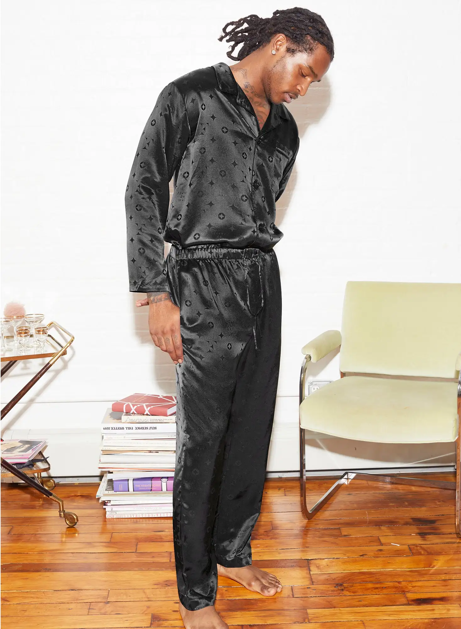 Ultra luxe. Fleur monogram printed silk pajama pant with drawstring waist and pocket detail. Complete the set with the matching Men’s Silk Jacquard PJ Top.