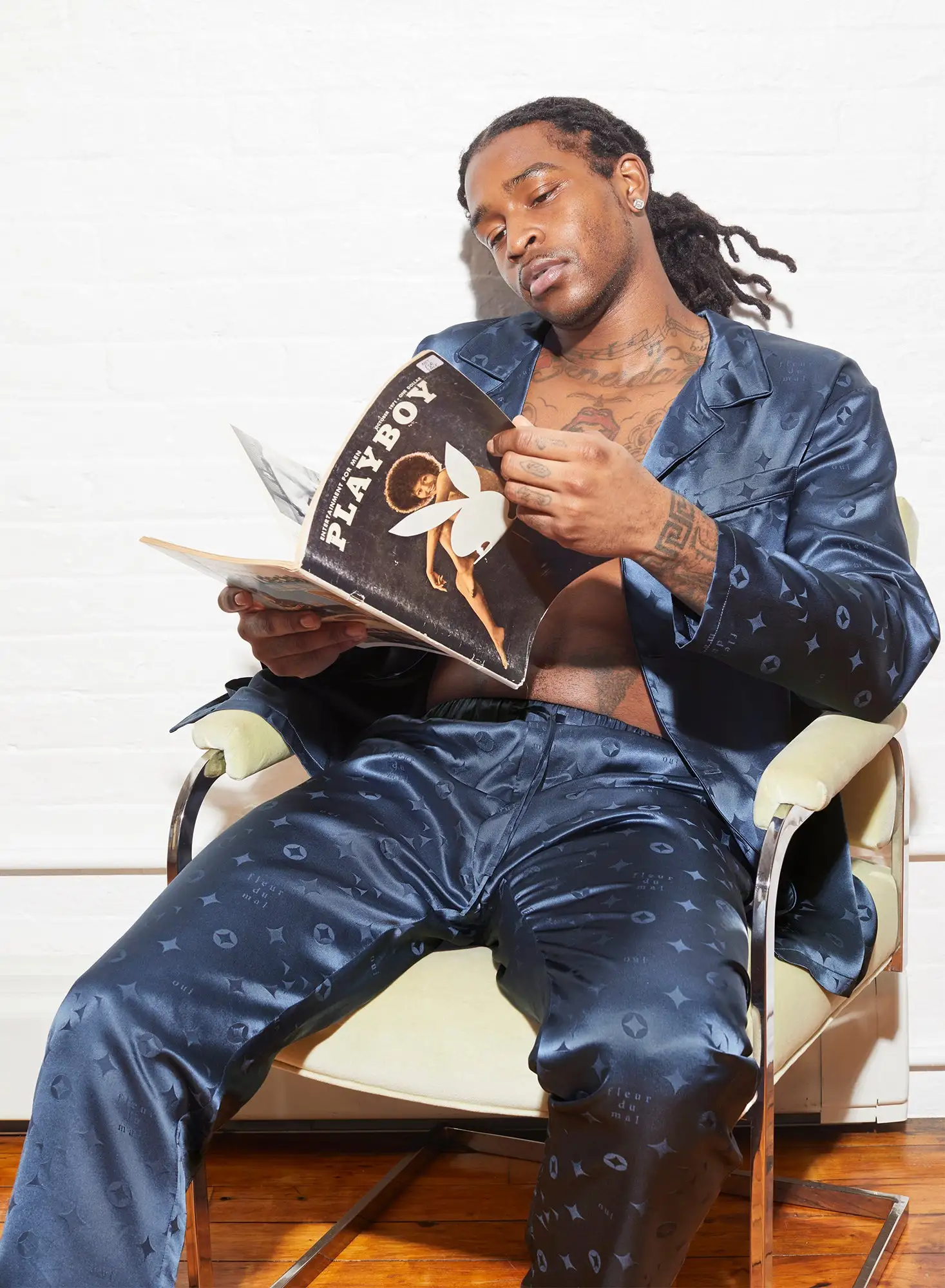 Ultra luxe. Fleur monogram printed silk pajama pant with drawstring waist and pocket detail. Complete the set with the matching Men’s Silk Jacquard PJ Top.