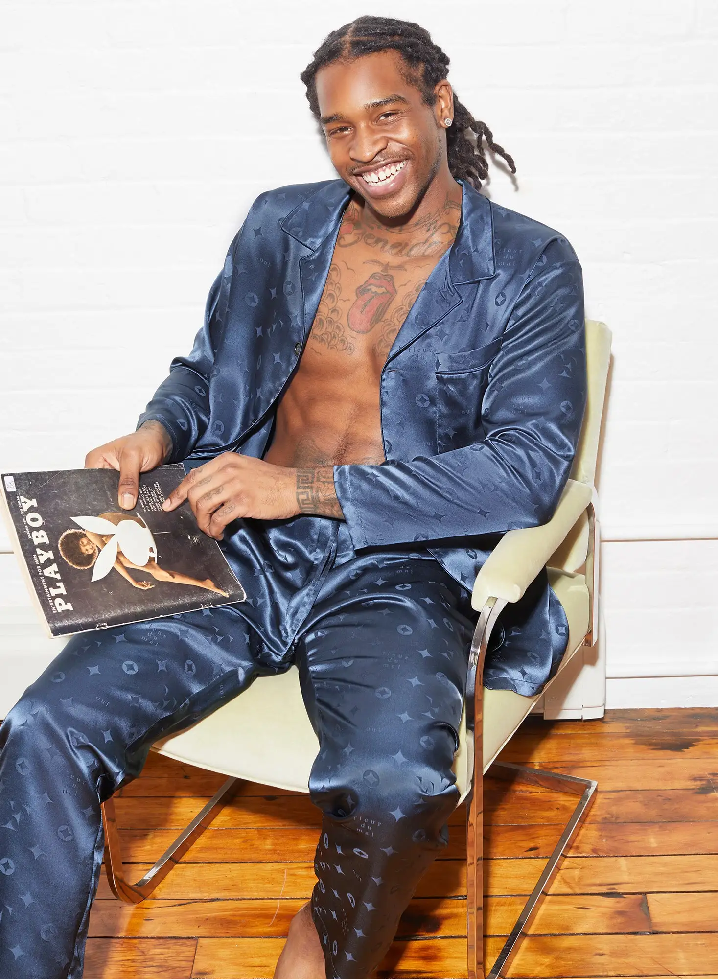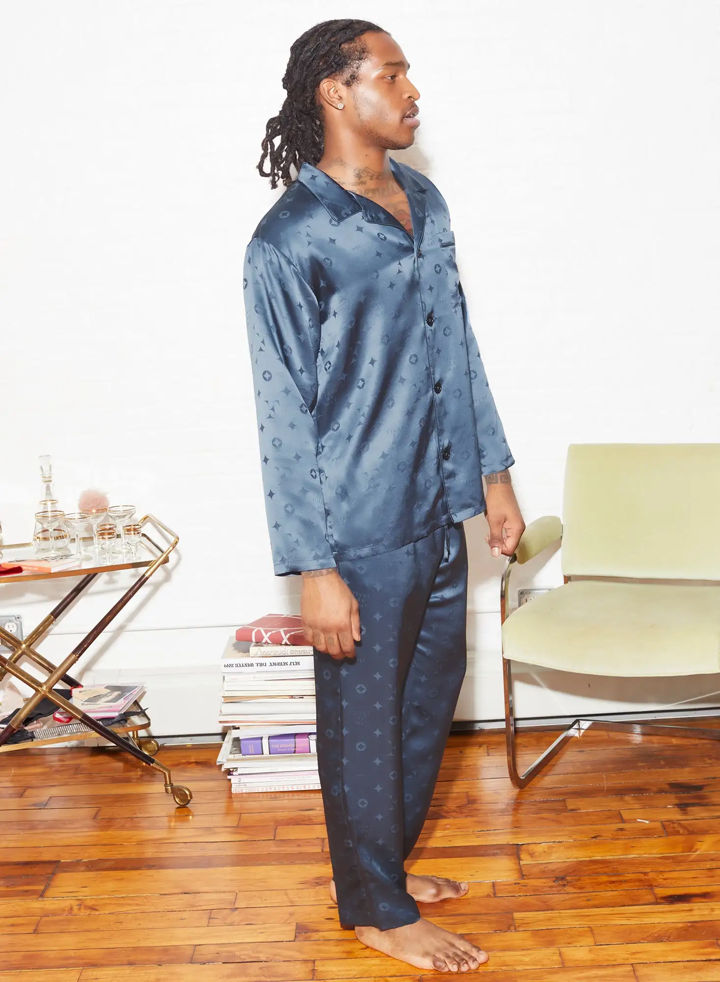 Ultra luxe. Decadent silk satin pajama top in our new Fleur monogram print. Featuring front buttons and pocket detail. Complete the set with the matching Men’s Silk Jacquard PJ Pants or Unisex Boxer Short.