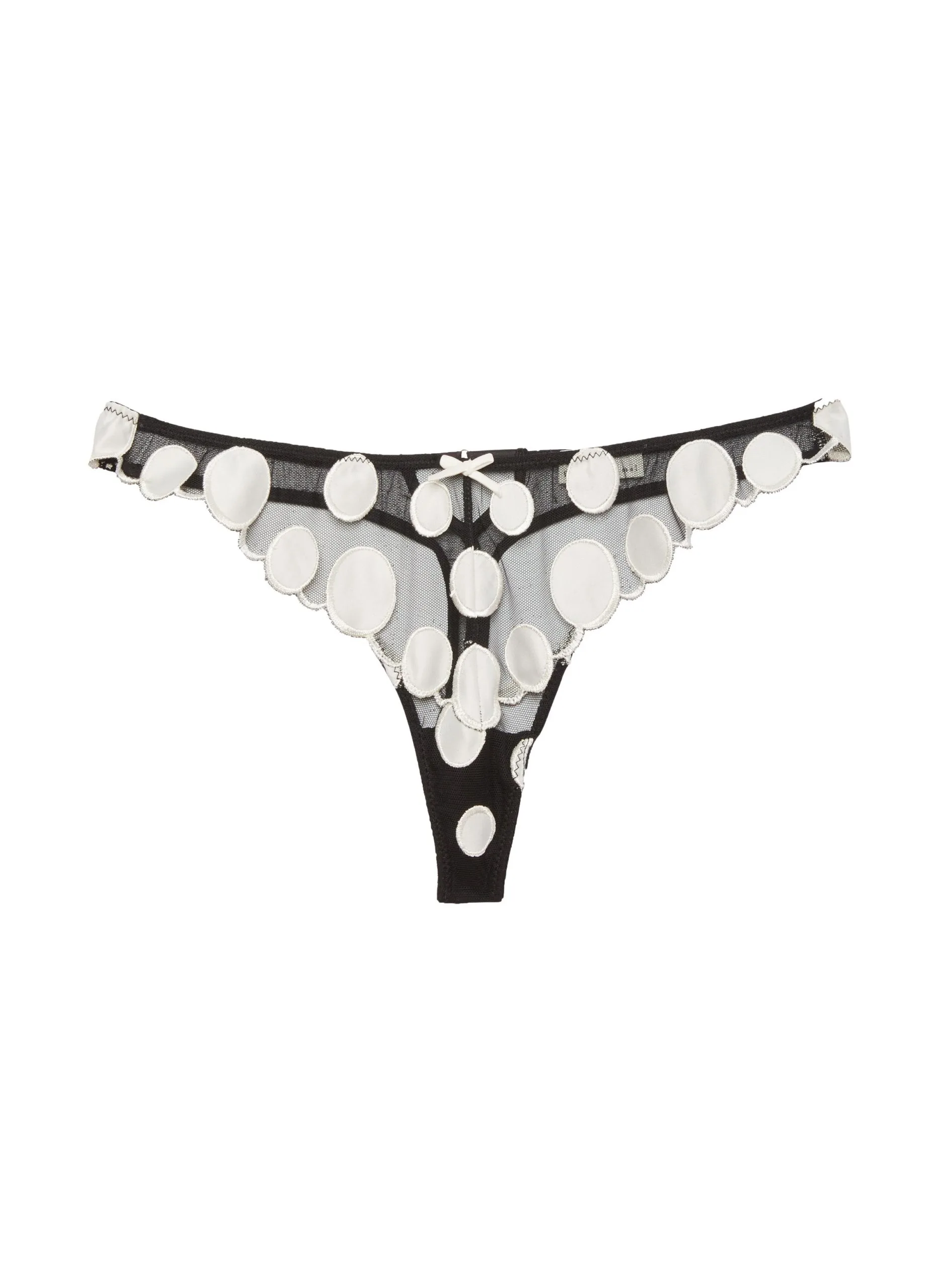 Seeing spots. Our flirty Polka Dot Embroidery Thong, featuring luxe satin polka dot embroidery on sexy sheer tulle ground. Thong cut with mesh back and keyhole detail. Complete the set with the matching Polka Dot Embroidery Balconette and Garter.