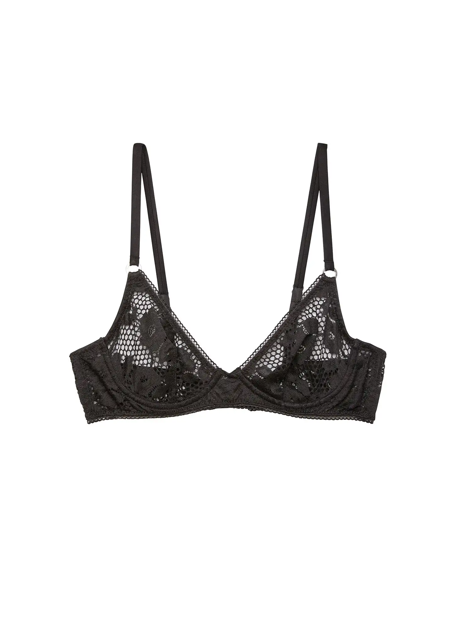 Girls on film. Our Rosalia Lace Demi Bra in stunning floral stretch lace with unique netting detail. Features flirty picot trim and adjustable silk straps with logo ring. Silk hook & eye closure at back. Perfect for everyday. Complete the set with the matching Rosalia Lace Thong or Cheeky.