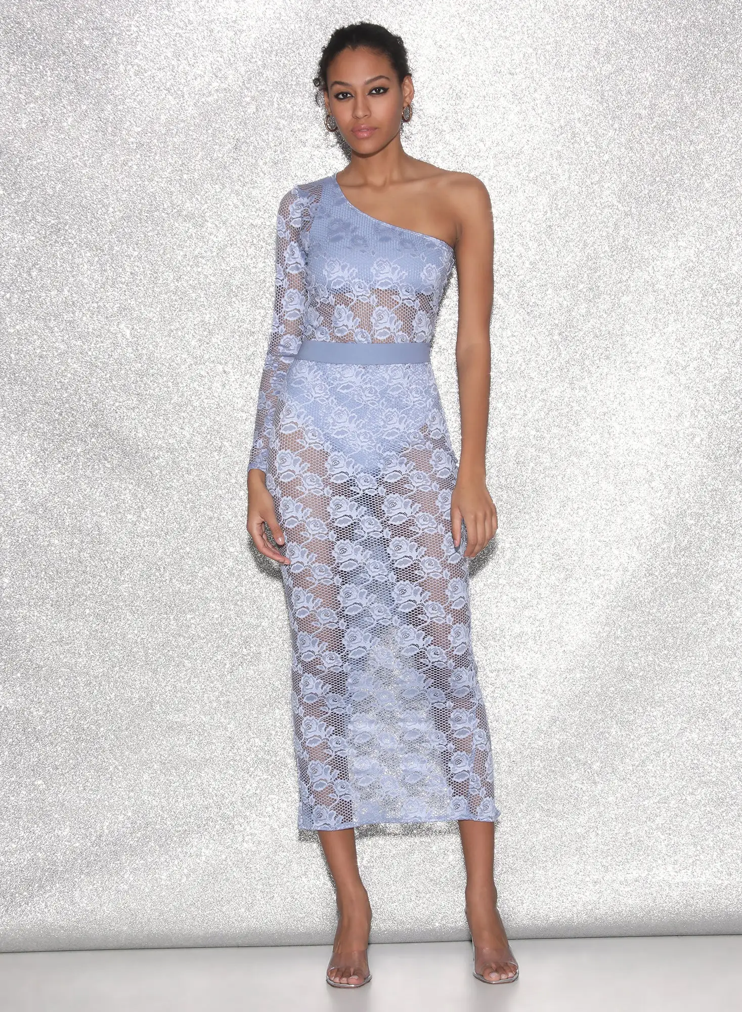 Cold shoulder, hotter nights. Our flirty Rosalia Lace One Shoulder Bodysuit, featuring lined bottom and removable bandeau top. Cheeky cut with bottom snap closure. Complete the look with the matching Rosalia Lace Skirt.