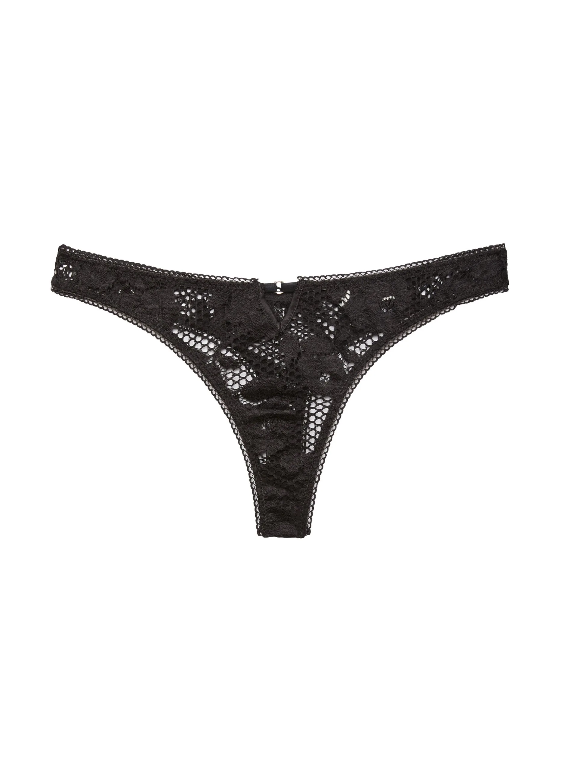 Ready for your close up? Our Rosalia Lace Thong, cut from seamless floral stretch lace with unique netting detail. Features playful picot trim and front keyhole detail. Pair with the matching Rosalia Lace Triangle Bra for the perfect everyday set, or disicpline accordingly with the Rosalia Lace Demi Bra and Pearl Handcuffs.