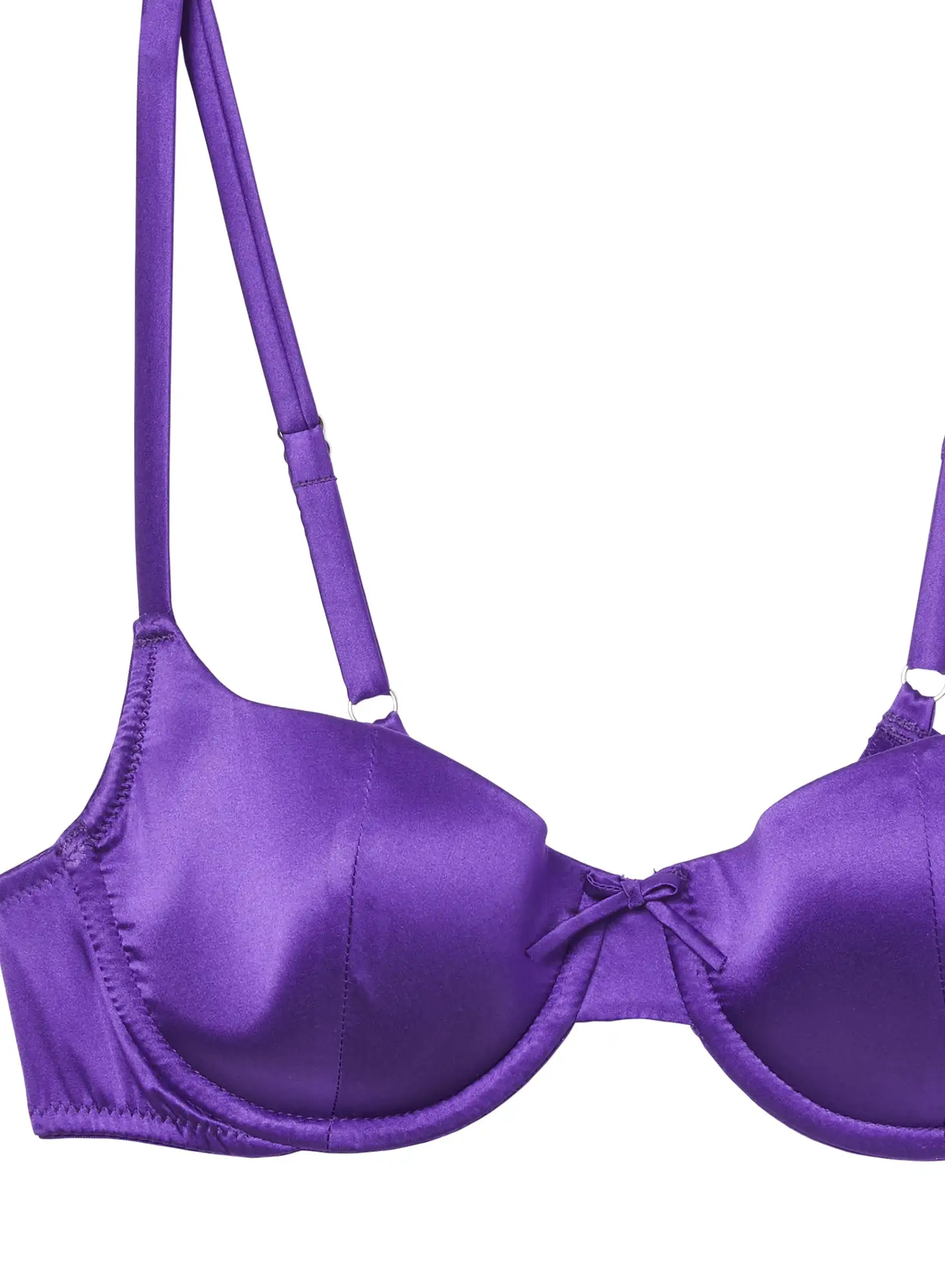 Our silk Satin Luxe Balconette Bra provides you with flawless lift and shape. One of our most comfortable bras for everyday, perfectly smooth under any garment, lined in silk for extra comfort against the skin. Front bow detail. Adjustable straps for the perfect fit. Complete the set with the matching Laced Up Luxe Cheeky or Luxe Flutter Panty.