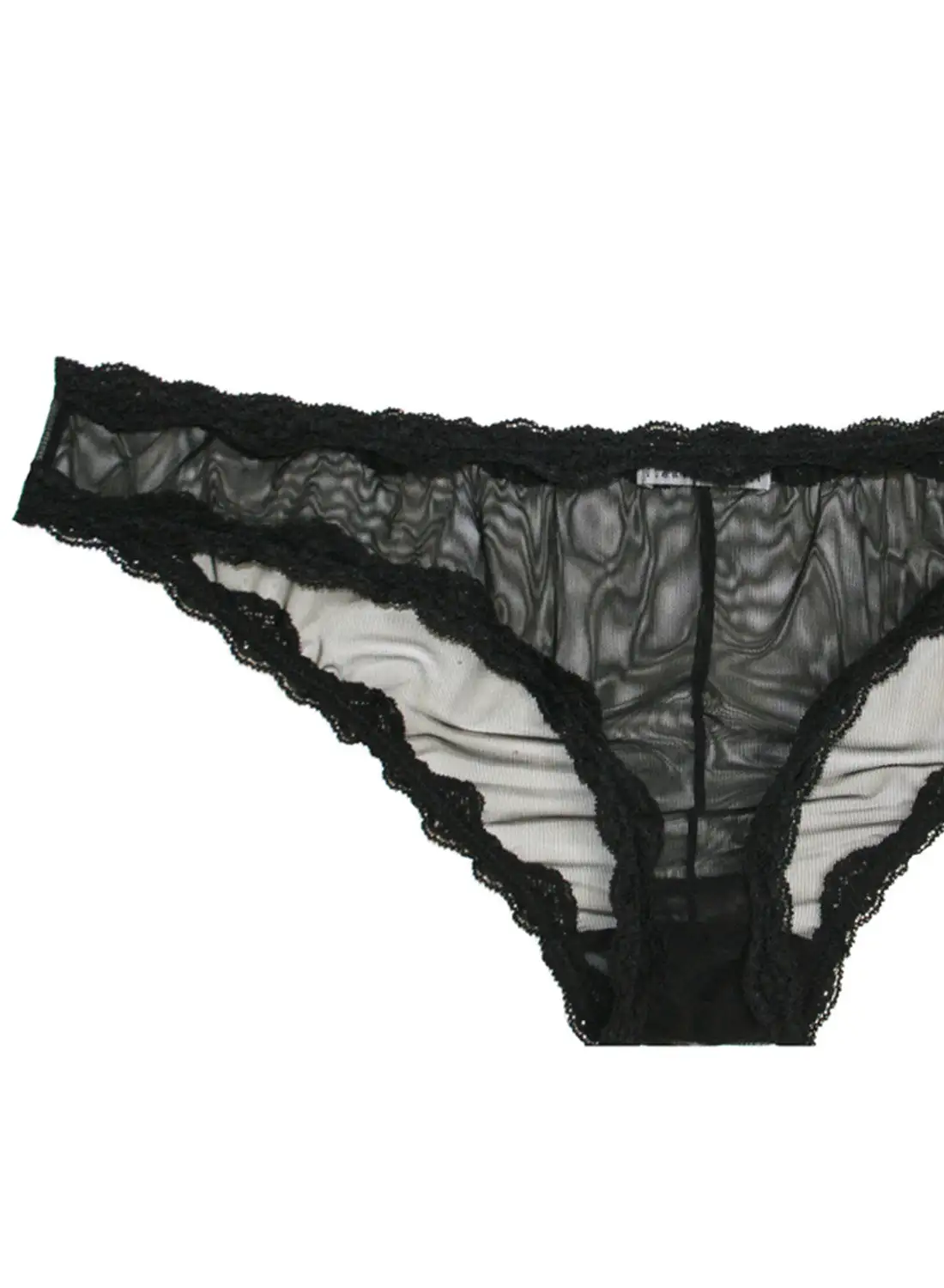 The quintessential bikini. Stretch tulle brief is cut to be chic, sheer and cheeky. Adorned with lace trim and center back seam. Pair yours with the matching Sheer Tulle Demi Bra.