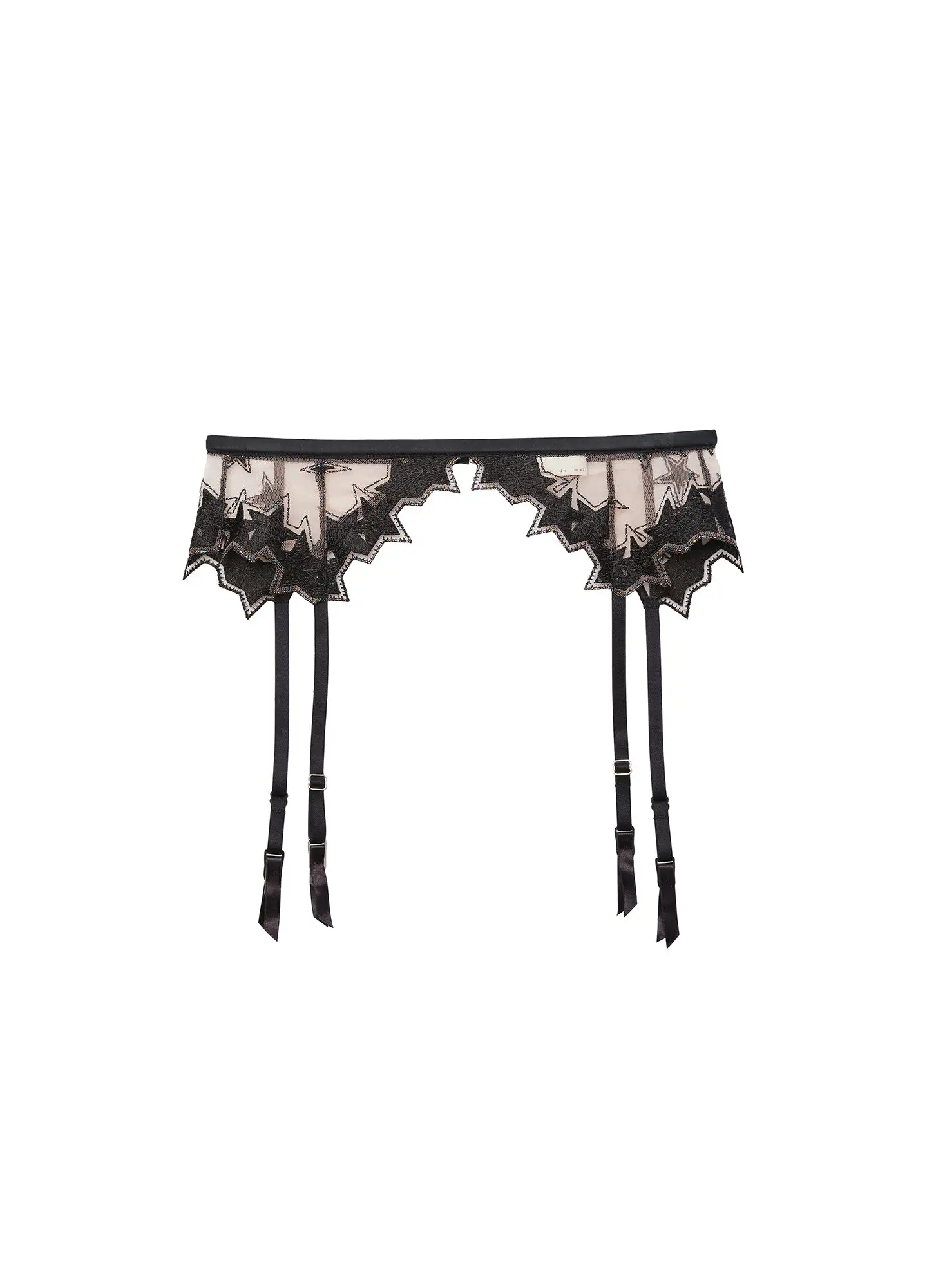 Shine bright. Our Super Star Embroidery Garter Belt is the perfect addition to amp up your lingerie set. Features custom Italian embroidery with shimmering thread and flirty scalloped edge. Center back closure sits at waist. Pair with the matching Super Star Embroidery Demi Bra and Thong for an immaculate set.