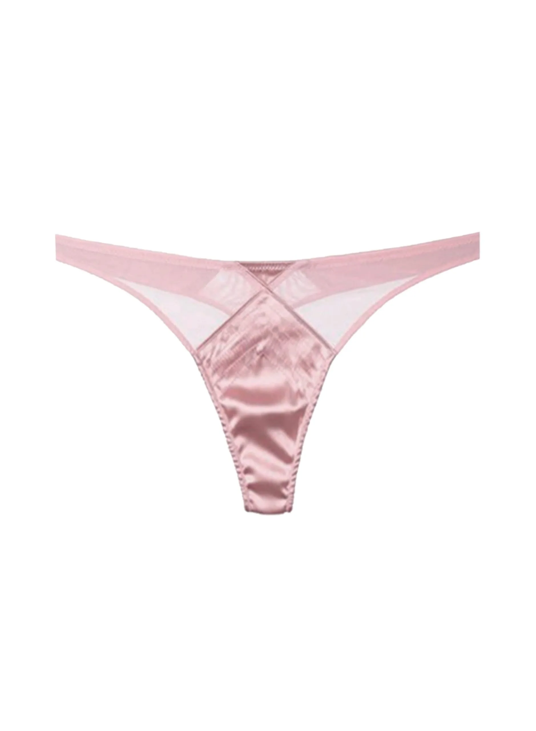 Ultra luxe silk satin thong with top stitch detailing at front and stretch tulle side panels. Pair it with the Top Stitch Convertible Bra and Top Stitch Garter Belt.