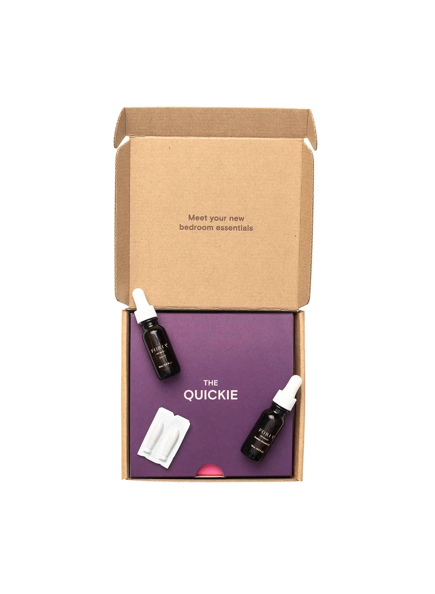 Meet me for a quickie. This limited-edition bundle includes all the bestsellers from Foria’s Intimacy collection, in deluxe mini sizes – so you’re ready for some good lovin’, anytime, anywhere. Awaken Arousal Oil is a unique, broad-spectrum CBD topical that works with your body to enhance pleasure, while the all natural Intimacy Suppositories ease discomfort and relieve tension with 50mg of organic broad-spectrum CBD. Top everything off with the Sex Oil, with 400mg broad-spectrum CBD to soothe and excite.
