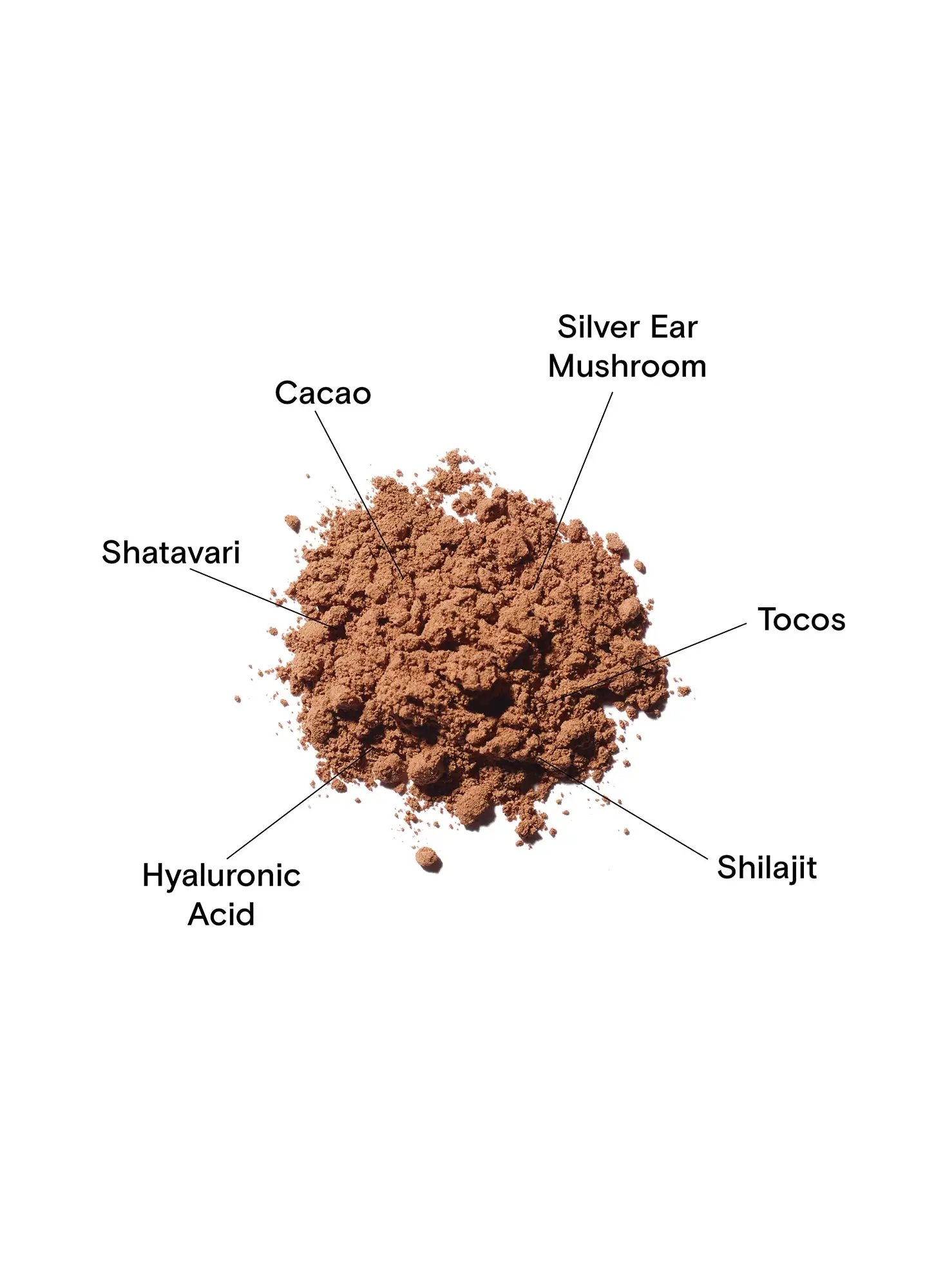 Sip in bliss. Moon Juice’s Cosmic Cocoa is an arousing, nourishing, & decadent hot chocolate. Heirloom Cacao helps boost mood and libido. Tocos, Silver Ear Mushroom & edible Hyaluronic Acid hydrate skin. Adaptogens like Ashwagandha, Shatavari & Reishi target the effects of stress.